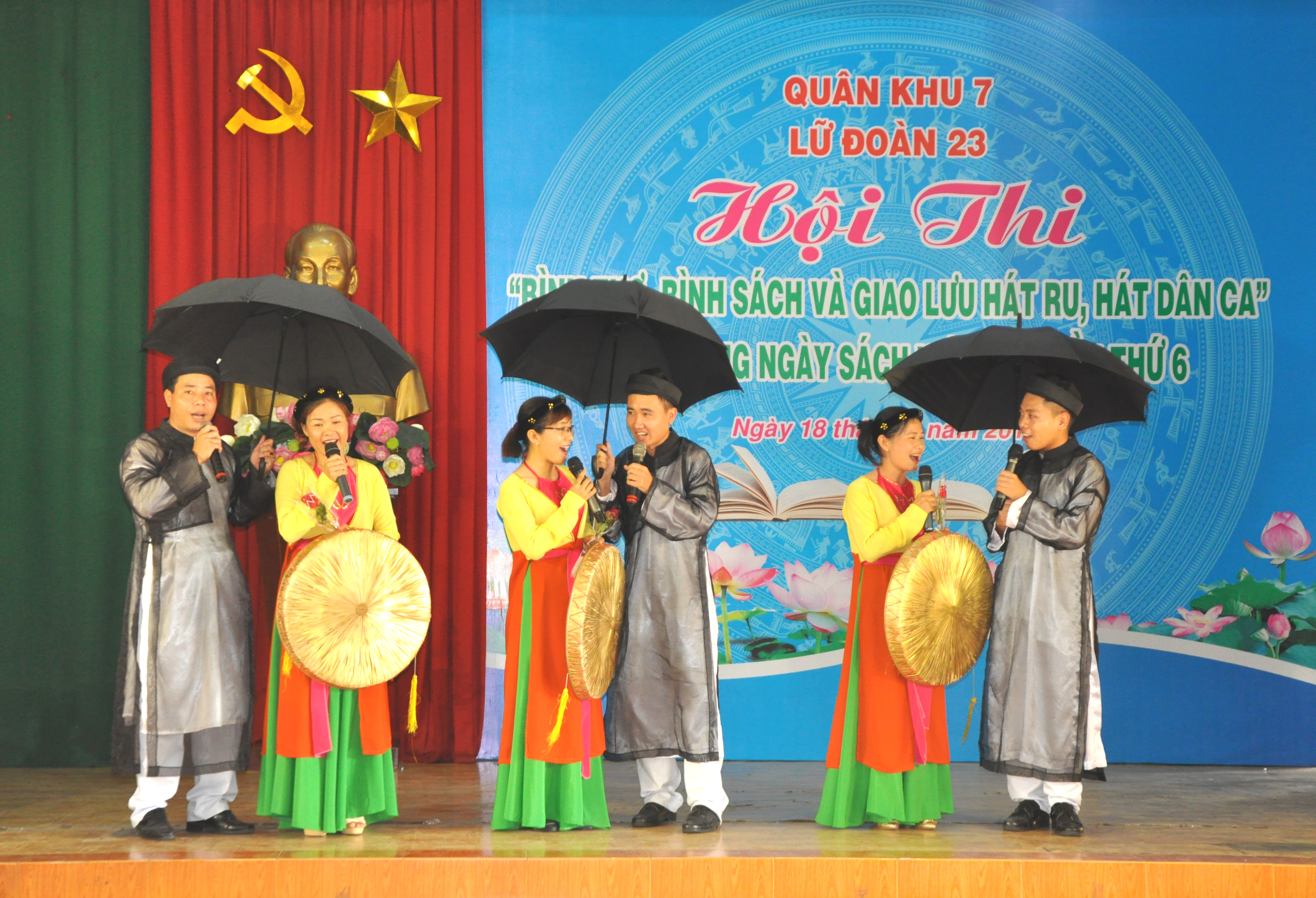 Tiết mục văn nghệ của Câu lạc bộ hát ru, hát dân ca Lữ đoàn 23 tại hội thi