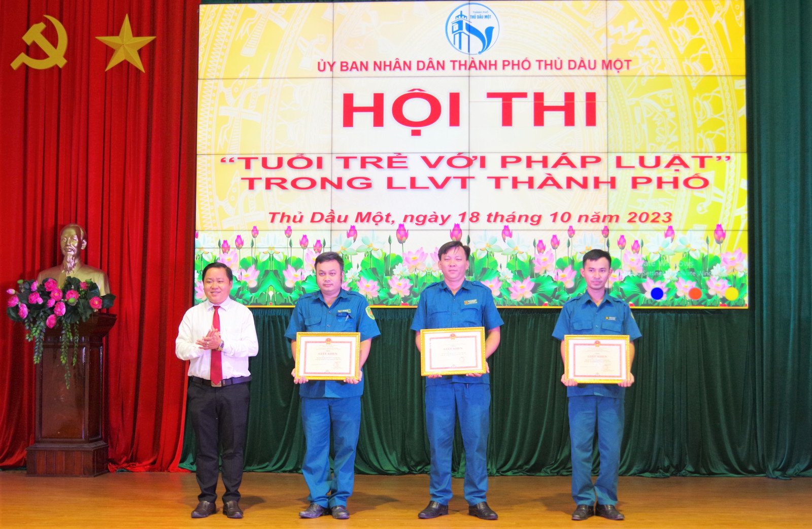 (QK7 Online) - Ngày 18-10, UBND thành phố Thủ Dầu Một, tỉnh Bình Dương tổ chức Hội thi Tuổi trẻ với pháp luật trong lực lượng vũ trang thành phố năm 2023 với chủ đề: “Nâng cao ý thức thượng tôn pháp luật, xây dựng đơn vị vững mạnh toàn diện “Mẫu mực, tiêu biểu”, hoàn thành xuất sắc nhiệm vụ được giao.
