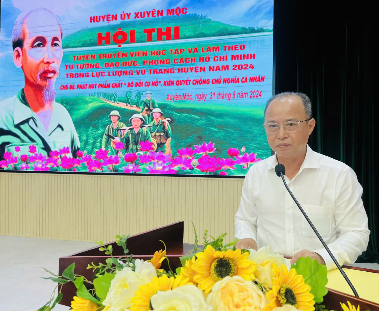 Đồng chí Huỳnh Kim Sơn, Phó Bí thư Thường trực Huyện ủy Xuyên Mộc phát biểu bế mạc hội thi.