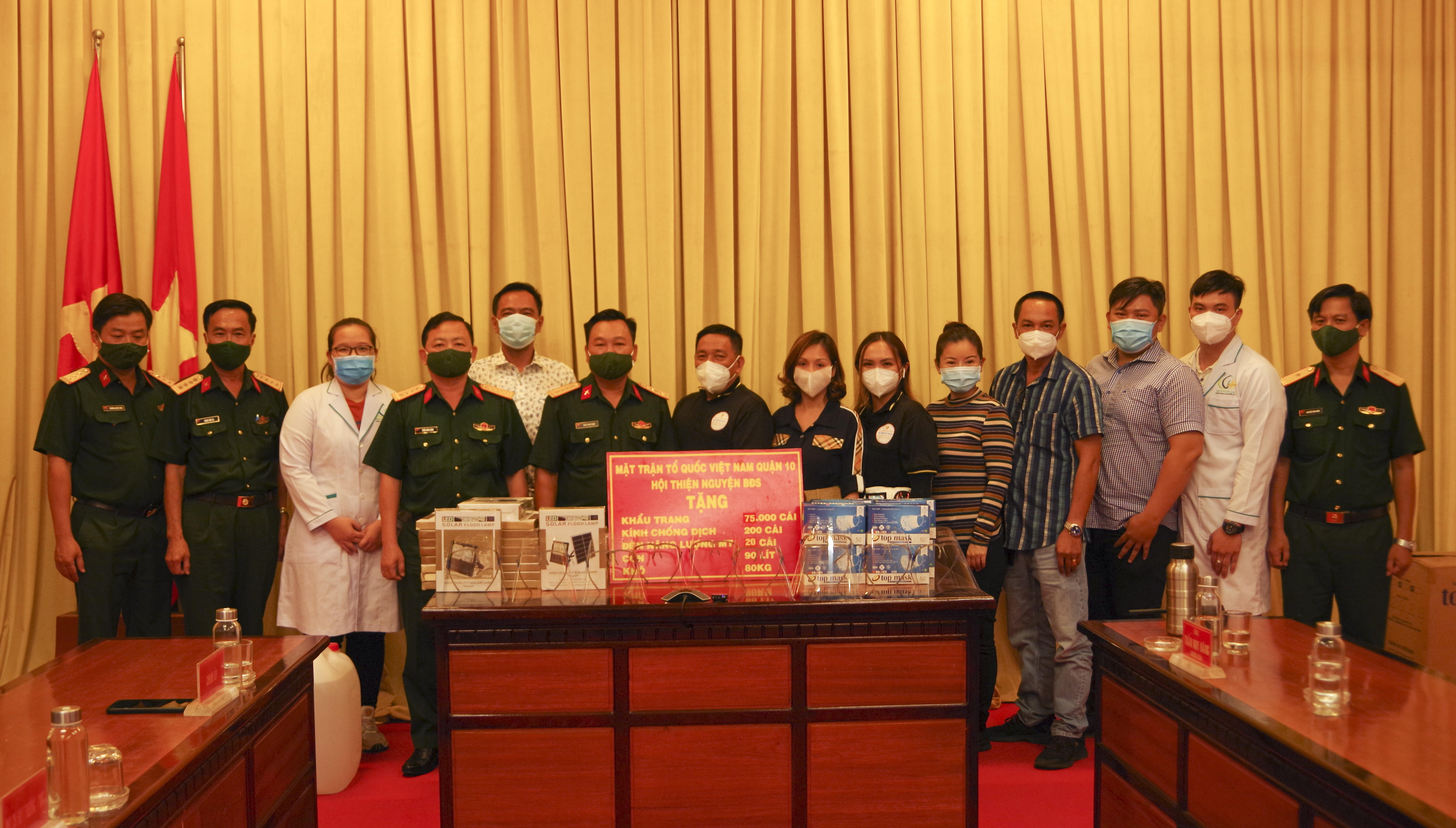 Trước đó, Ban CHQS Quận 8, Bộ Tư lệnh Thành phố Hồ Chí Minh phối hợp với Hội thiện nguyện BĐS tặng Ban CHQS huyện Thạnh Hóa, 25.000 khẩu trang y tế, 50 tấm kính nano chống giọt bắn, 60 lít nước sát khuẩn, 40 kg cá khô, 10 hộp thuốc cảm sốt và tặng Đồn Biên phòng Thuận Bình 30.000 khẩu trang, 90 lít nước sát khuẩn, 150 tấm kính chống giọt bắn, 10 bộ đèn năng lượng mặt trời, 10 hộp thuốc cảm sốt Paracetamol, 50 kg cá khô và 20 bình xịt rửa tay.