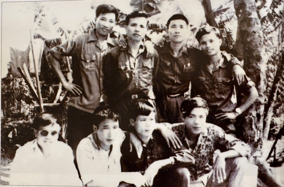 Ông Trần Ngọc Thổ (đứng thứ 3 từ trái qua) cùng Ban Tham mưu Trung đoàn 88 - Ảnh chụp ngày 28/4/1975 tại Cần Giuộc, Long An. Ảnh: Tư liệu
