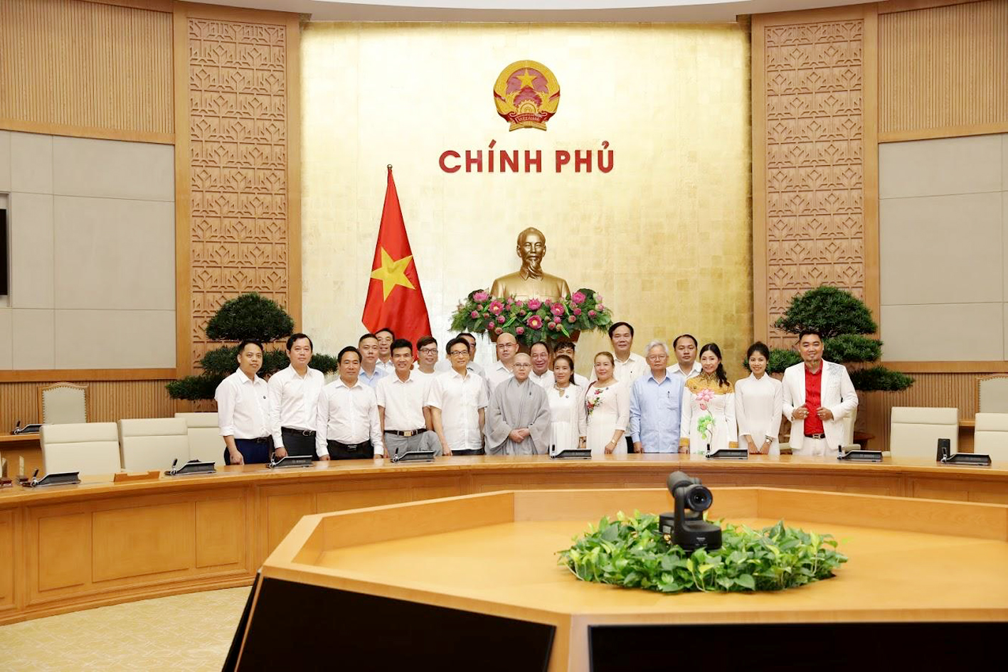 Holy Thắng tháp tùng cùng đoàn sứ giả tiêu biểu vào phủ Chủ tịch để mạn đàm về Dự án Ngày Lễ Quốc tổ Việt Nam toàn cầu.