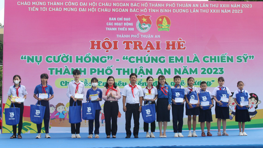Tại lễ khai mạc, Ban chỉ đạo các hoạt động thanh thiếu nhi TP.Thuận An tặng cờ lưu niệm cho các tiểu trại; tặng quà  đơn vị hỗ trợ; tặng quà và 20 suất học bổng cho các em học sinh có hoàn cảnh khó khăn.