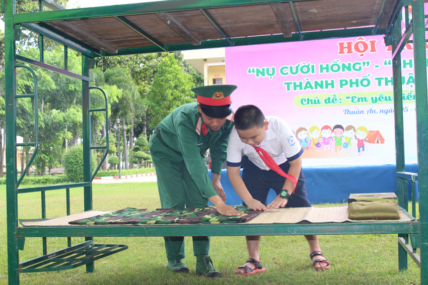 Hội trại diễn ra trong 2 ngày 5 và 6-8 với chuỗi hoạt động như: Xem biểu diễn võ thuật, tháo lắp súng; học gấp nội vụ; tham quan vườn rau, ao cá, tăng gia sản xuất; vẽ tranh sáng tạo với chủ đề “em yêu biển, đảo quê hương”; phố hàng rong ẩm thực; chương trình giao lưu “Thiếu nhi Thuận An mừng Đại hội cháu ngoan Bác Hồ”; sinh hoạt lửa trại “Nụ cười hồng”…