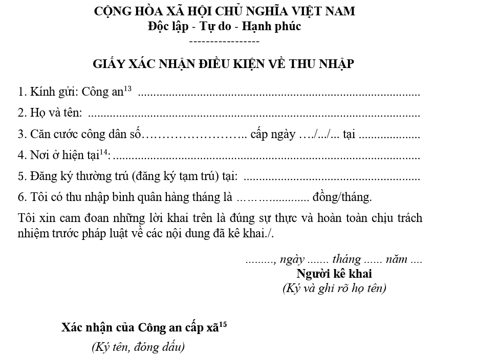 Mẫu số 05. Giấy tờ chứng minh điều kiện về thu nhập để được mua, thuê mua nhà ở xã hội