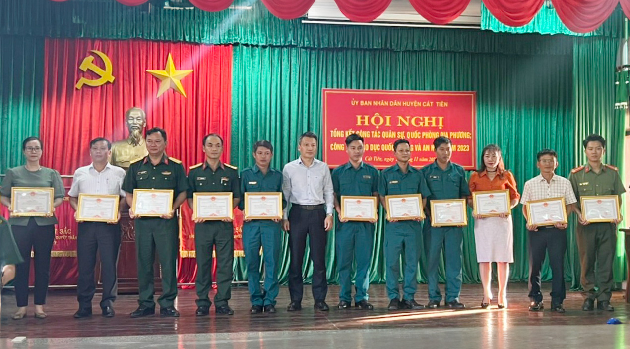 Phát biểu tại hội nghị, đồng chí Nguyễn Tiến Dũng, Bí thư Huyện ủy Cát Tiên biểu dương và ghi nhận, đánh giá cao những kết quả mà chính quyền, các cấp, các ngành đạt được trong công tác quốc phòng địa phương; giáo dục quốc phòng và an ninh; diễn tập khu vực phòng thủ; kêu gọi, tuyển chọn công dân nhập ngũ thời gian qua. Qua đó, tạo mối liên hệ mất thiết giữa quân với dân góp phần quan trọng vào sự phát triển kinh tế - xã hội của địa phương. Đồng chí Bí thư Huyện ủy Cát Tiên nhấn mạnh, chính quyền địa phương tiếp tục chỉ đạo, giao nhiệm vụ để các cơ quan, ban ngành làm tốt hơn nữa công tác quân sự, quốc phòng trong năm 2024 và những năm tiếp theo.