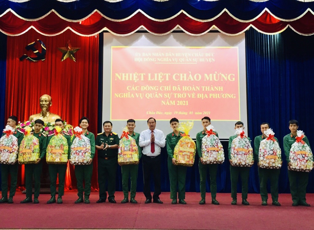 Dịp này, UBND huyện Châu Đức tặng mỗi quân nhân xuất ngũ một phần quà và tổ chức cho các xã, thị trấn đón quân nhân về với gia đình bảo đảm chu đáo, nghĩa tình, an toàn tuyệt đối.