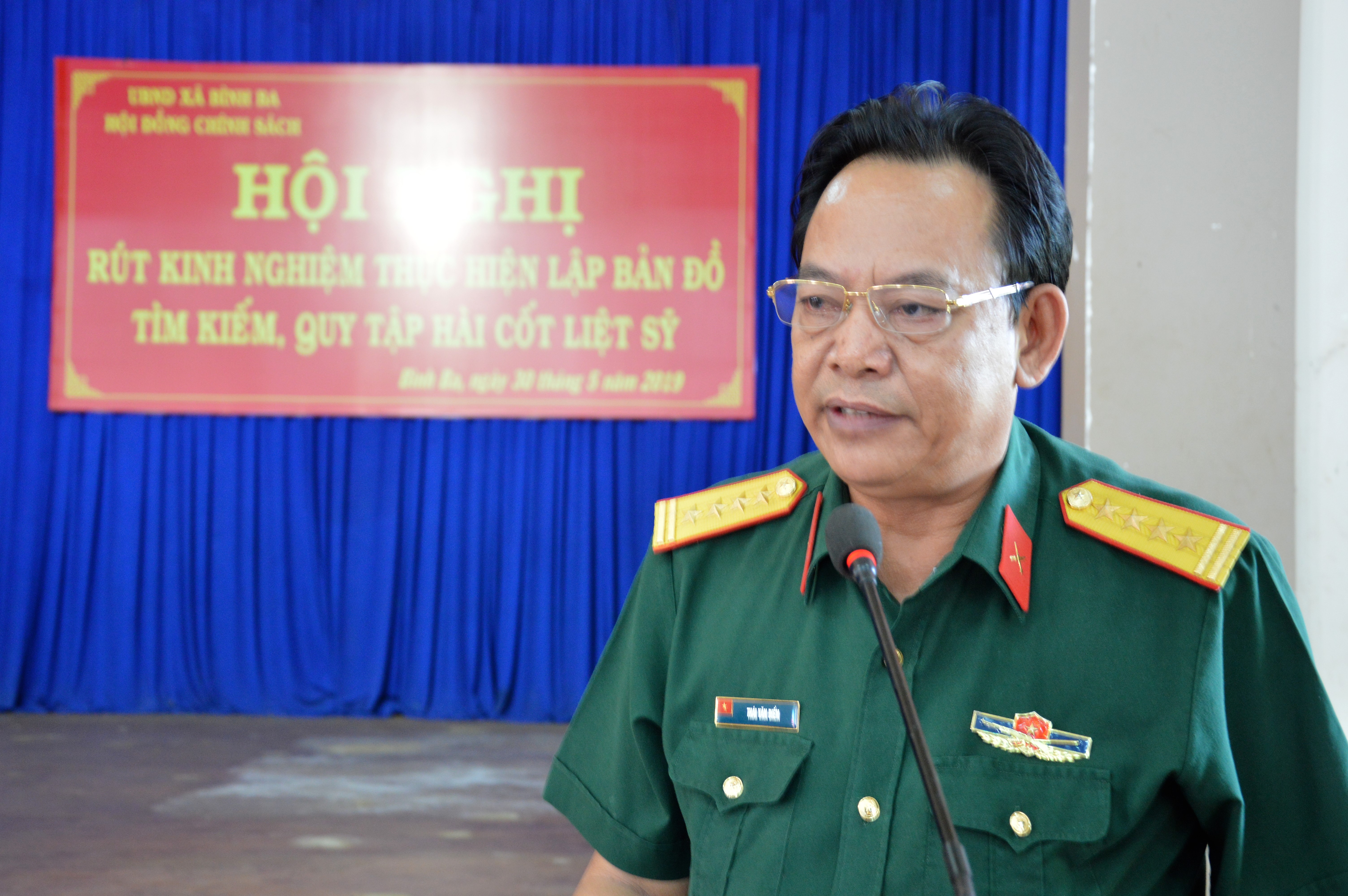 Phát biểu tại hội nghị, Đại tá Thái Văn Điền, Chính ủy Bộ CHQS tỉnh Bà Rịa – Vũng Tàu, Phó Ban Thường trực Ban Chỉ đạo tìm kiếm, quy tập hài cốt liệt sĩ tỉnh đánh giá cao những kết quả cấp ủy, chính quyền, các ban, ngành, đoàn thể và nhân dân xã đã đạt được, đồng thời nhấn mạnh thời gian tới Ban Chỉ đạo tìm kiếm, quy tập hài cốt liệt sĩ huyện Châu Đức chỉ đạo làm tốt việc rút kinh nghiệm theo đúng hướng dẫn của Ban Chỉ đạo quốc gia; nghiên cứu, nắm chắc thủ tục để thực hiện tốt các bước lập bản đồ tìm kiếm và quy tập hài cốt liệt sĩ, vì đây là có ý nghĩa đặc biệt quan trọng và cần thiết, thể hiện tình cảm, trách nhiệm của cấp ủy, chính quyền, nhân dân địa phương đối với các liệt sĩ và thân nhân liệt sĩ.