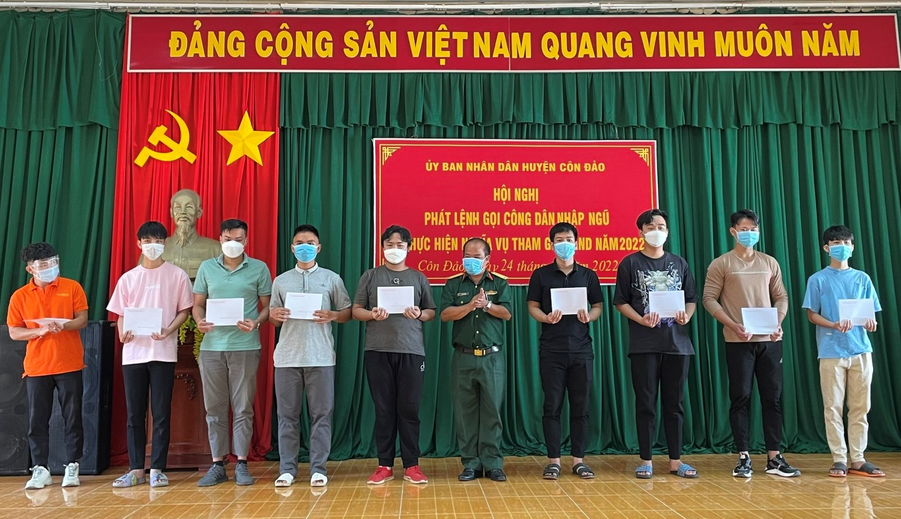 Tại buổi lễ, Hội đồng Nghĩa vụ Quân sự huyện Côn Đảo trao lệnh gọi nhập ngũ cho 19 nam công dân.Trong đó có 17 công dân thực hiện nghĩa vụ quân sự và 2 nam công dân thực hiện nghĩa vụ công an nhân dân, đảm bảo đủ 100% theo chỉ tiêu được giao.