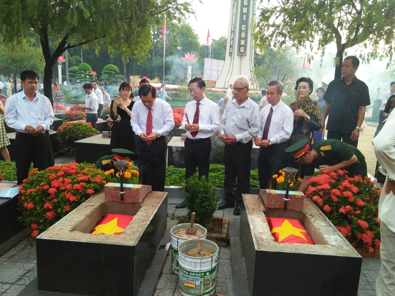 Lễ truy điệu và an táng hài cốt liệt sĩ.
