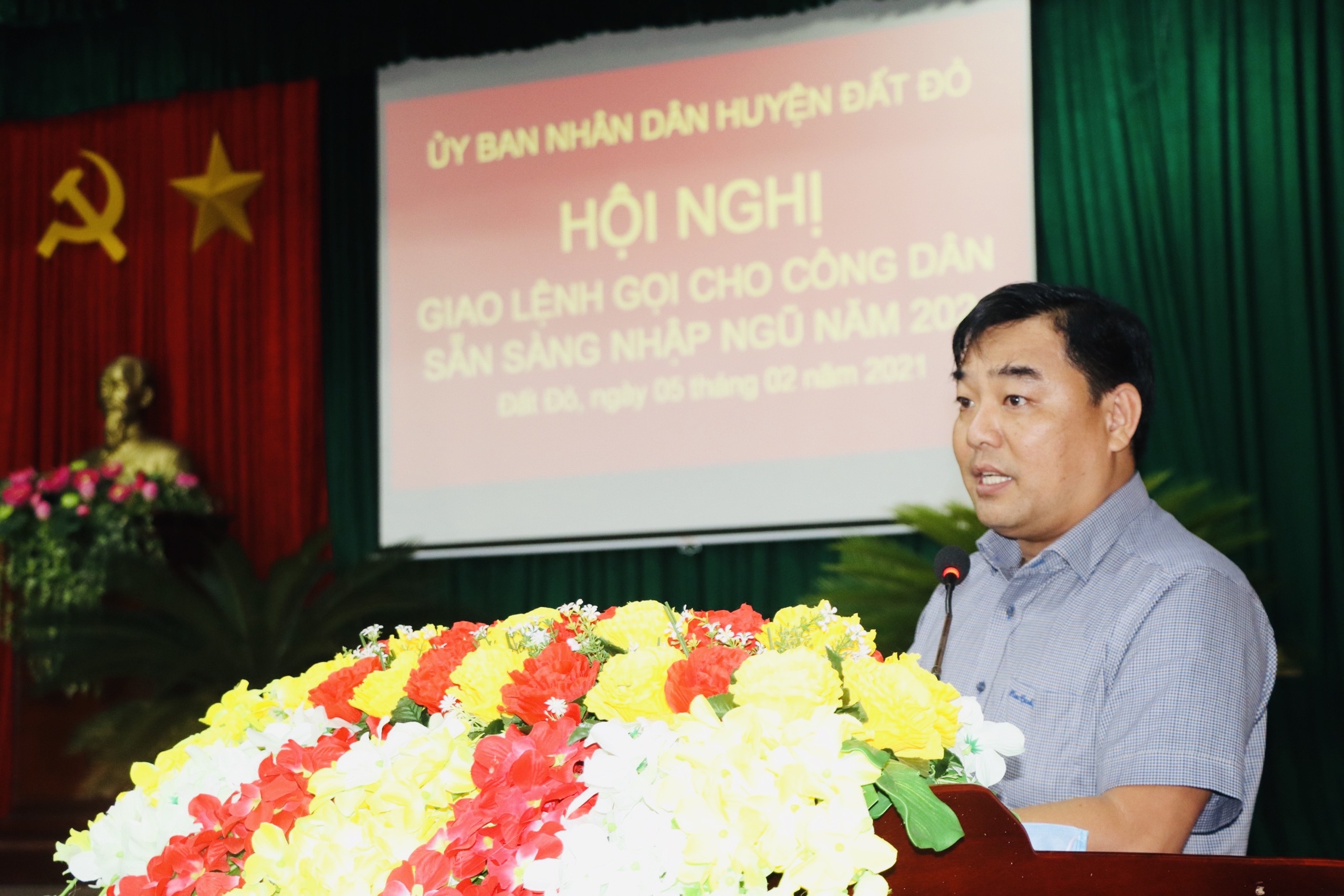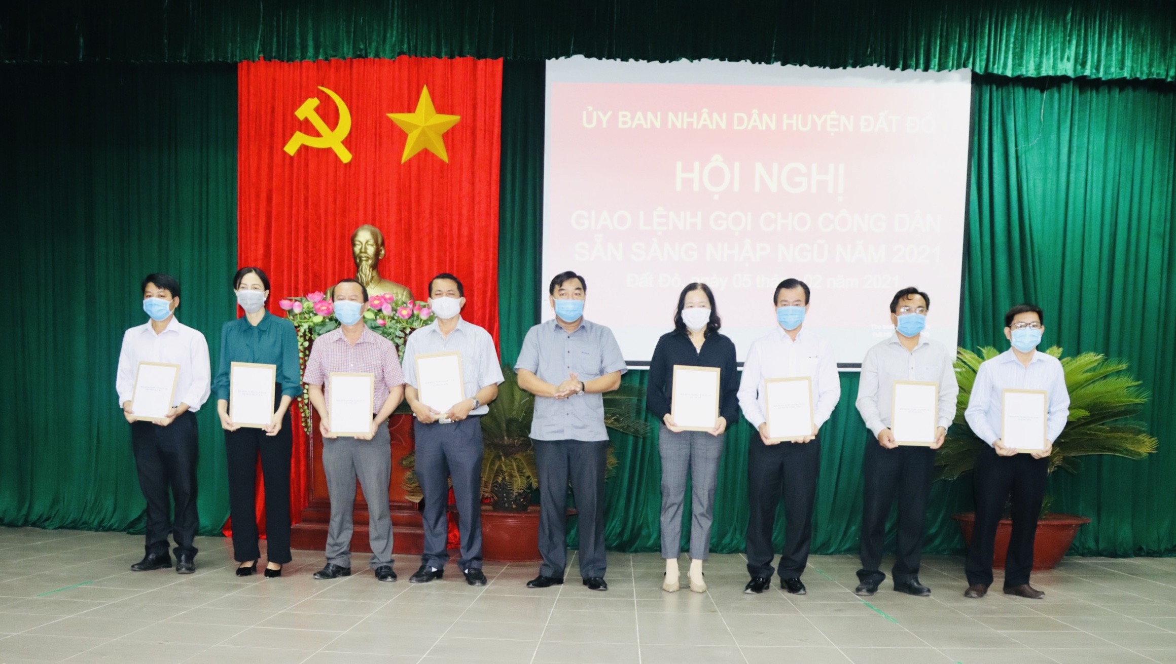 Năm 2021, huyện Đất Đỏ được tỉnh giao chỉ tiêu tuyển chọn 190 công dân nhập ngũ, trong đó nghĩa vụ quân sự 166 công dân và 24 công dân thực hiện nghĩa vụ công an. Qua các bước tuyển chọn, đến nay, huyện hoàn thành công tác tuyển chọn công dân trong độ tuổi nhập ngũ đủ điều kiện và tiêu chuẩn tham gia nghĩa vụ đạt 100% theo kế hoạch.