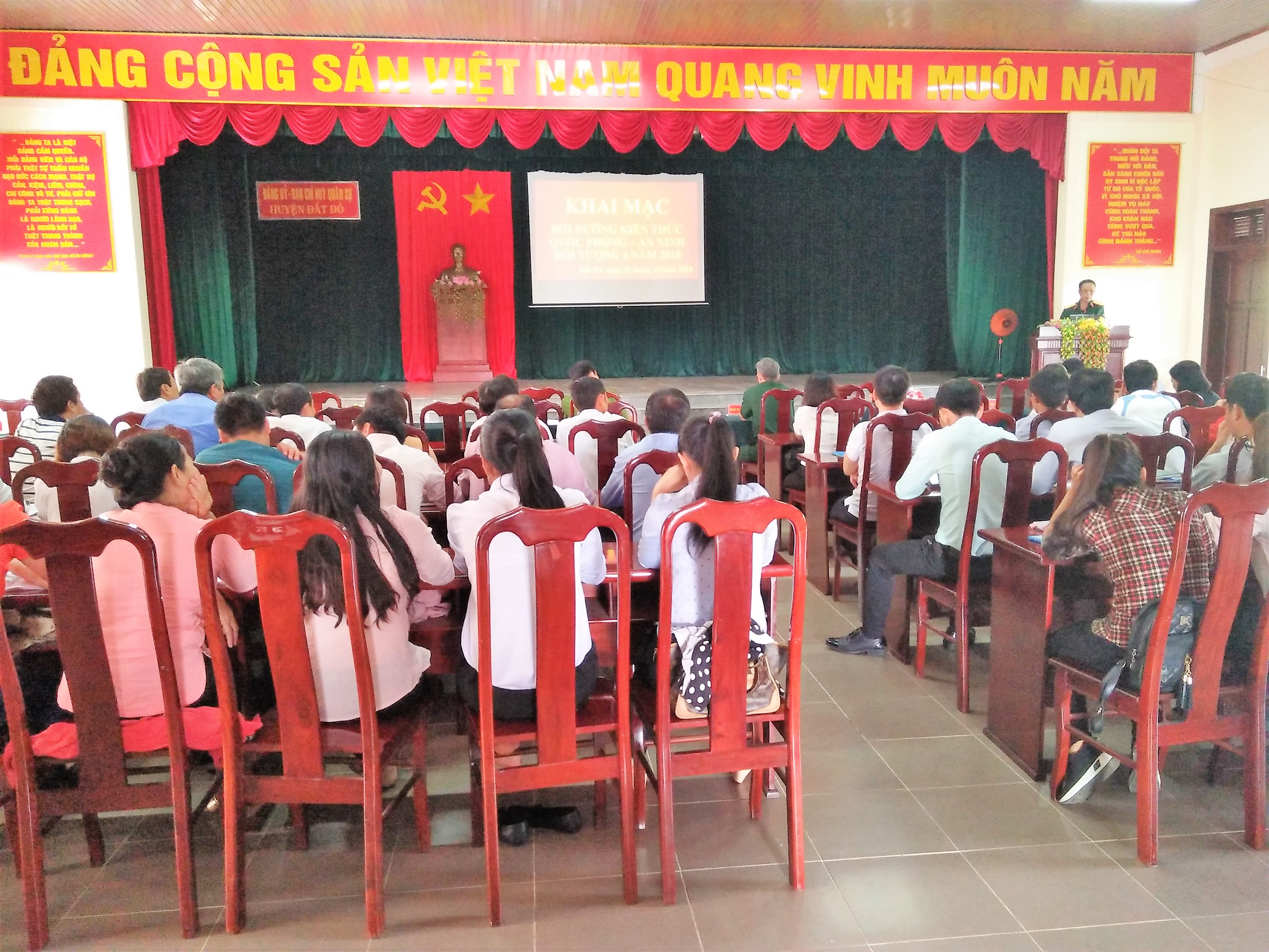 (QK7 Online) - Ngày 02/10/2018, Hội đồng giáo dục quốc phòng và an ninh huyện Đất Đỏ, tỉnh Bà Rịa – Vũng Tàu khai mạc Lớp bồi dưỡng kiến thức quốc phòng và an ninh cho 91 đồng chí cán bộ thuộc đối tượng 4 năm 2018.