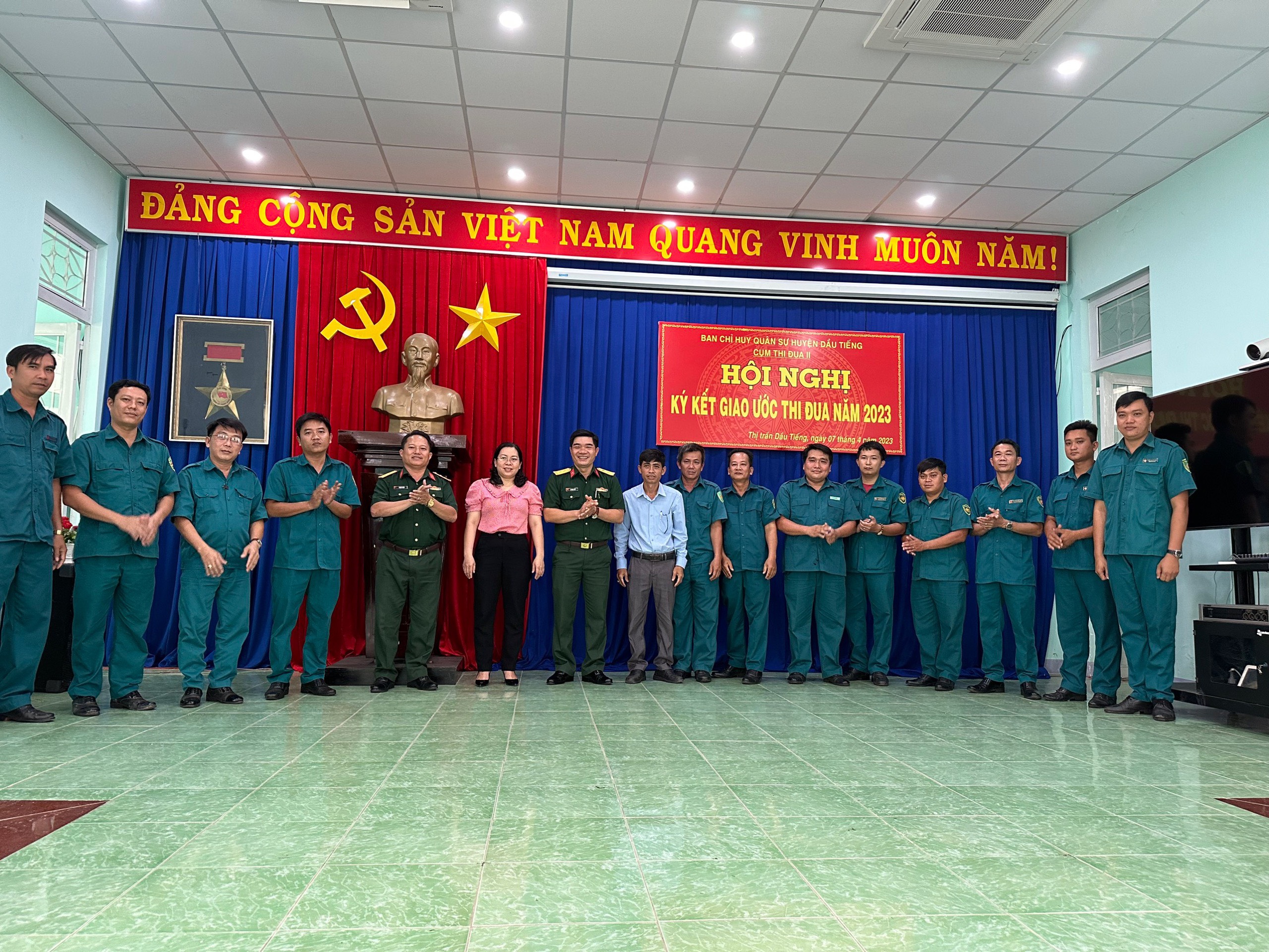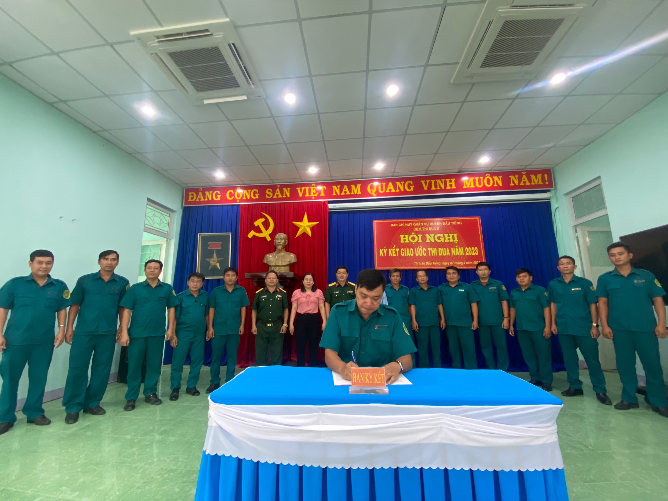 Tại hội nghị, các đơn vị ký kết giao ước thi đua năm 2023 với chủ đề “Đoàn kết, mẫu mực, kỷ cương, sáng tạo, quyết thắng”. Nội dung thi đua tập trung vào việc tăng cường đoàn kết, mẫu mực nêu gương, xây dựng cơ quan, đơn vị vững mạnh về chính trị, tư tưởng và tổ chức, phấn đấu 100% đội ngũ cán bộ, chiến sĩ trong LLVT huyện có bản lĩnh chính trị vững vàng, sẵn sàng nhận và hoàn thành tốt nhiệm vụ được giao, kết quả huấn luyện, kiểm tra 100% đạt yêu cầu, 75% trở lên đạt khá, giỏi; tăng gia, sản xuất phấn đấu đạt và vượt chỉ tiêu, làm tốt công tác phối hợp với các lực lượng chức năng bảo đảm an ninh chính trị, trật tự an toàn xã hội trên địa bàn huyện.