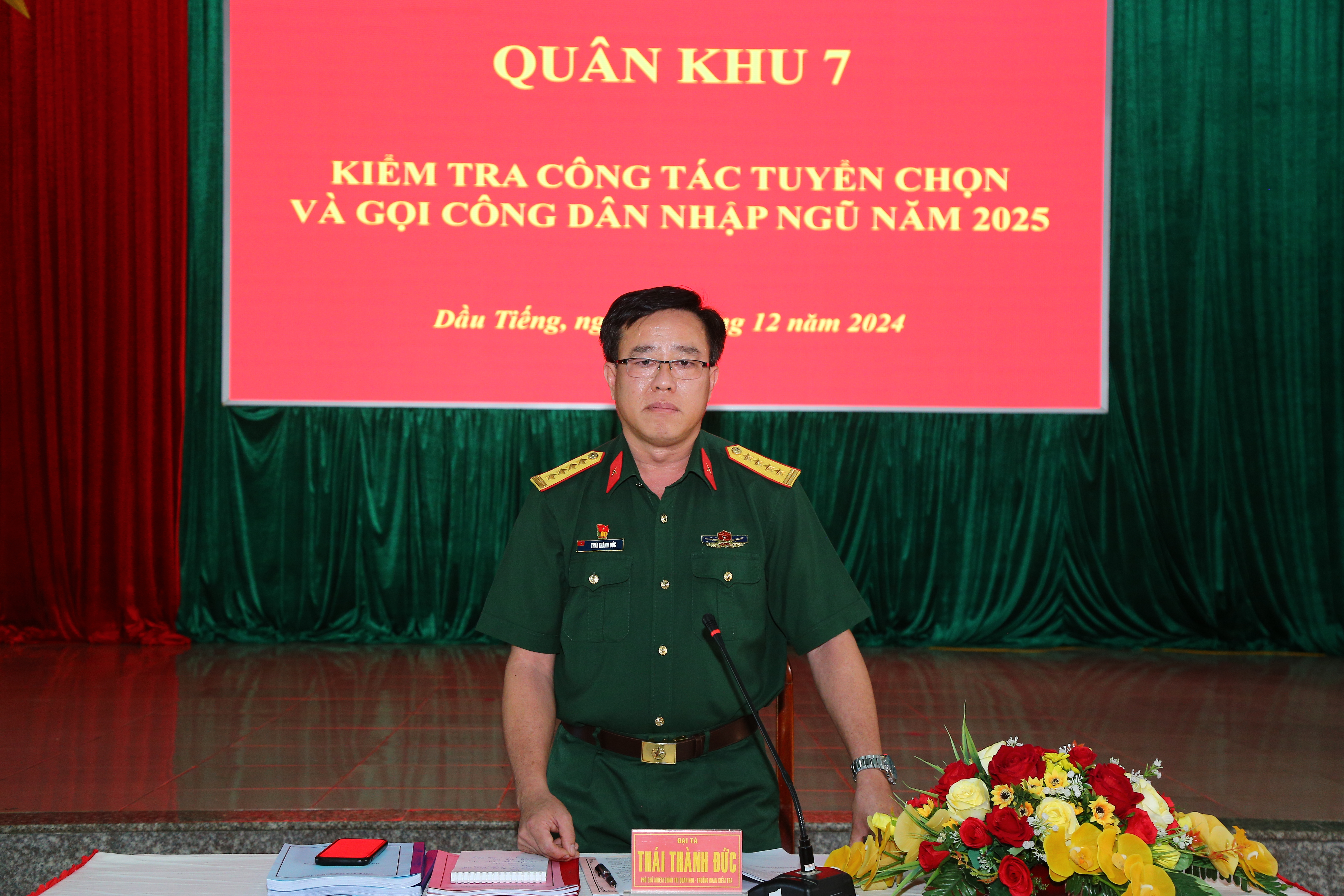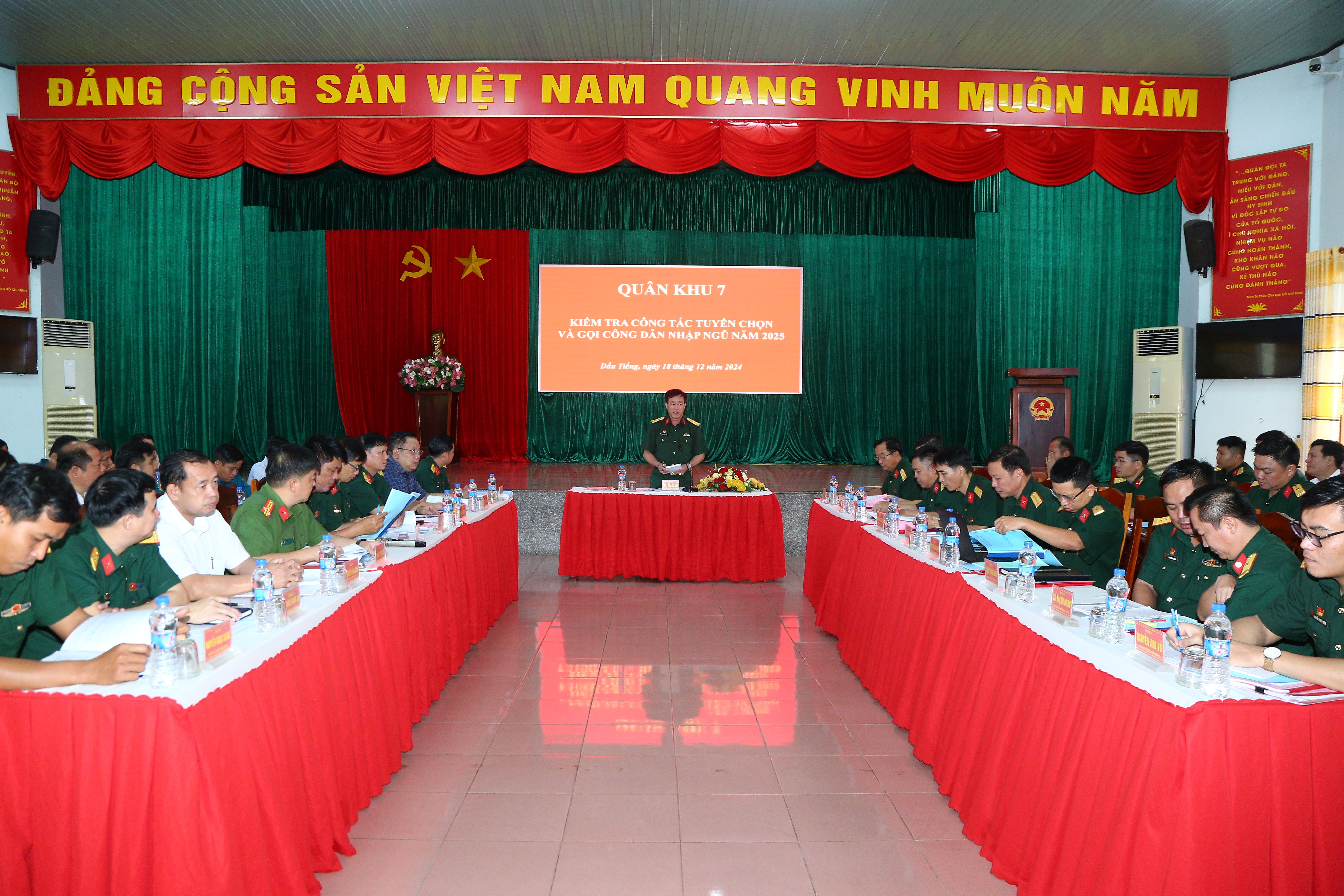 (QK7 Online) - Ngày 18/12, đoàn công tác Quân khu 7 do Đại tá Thái Thành Đức, Phó Chủ nhiệm Chính trị Quân khu làm trưởng đoàn đến kiểm tra công tác tuyển chọn và gọi công dân nhập ngũ năm 2025 tại huyện Dầu Tiếng, tỉnh Bình Dương.