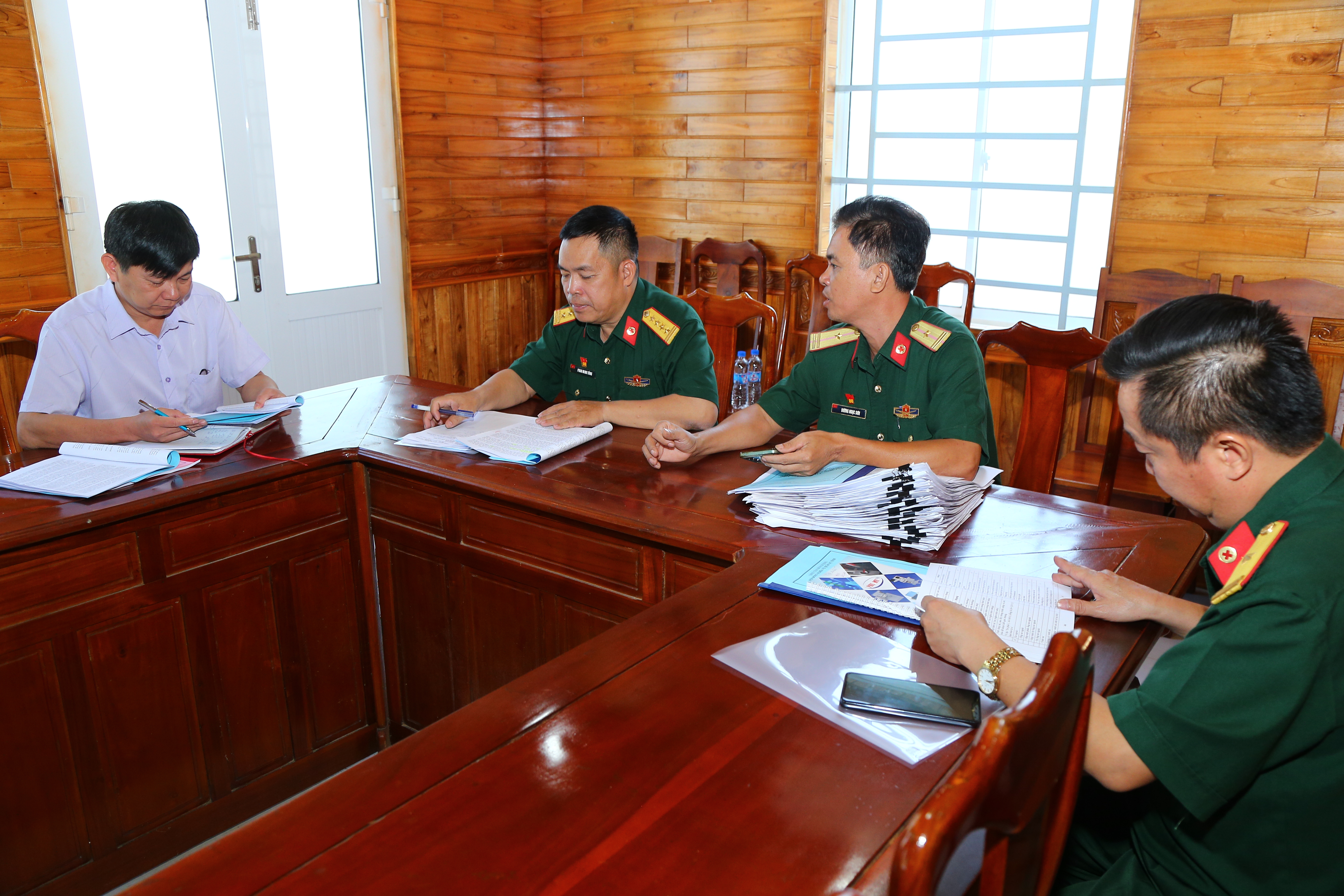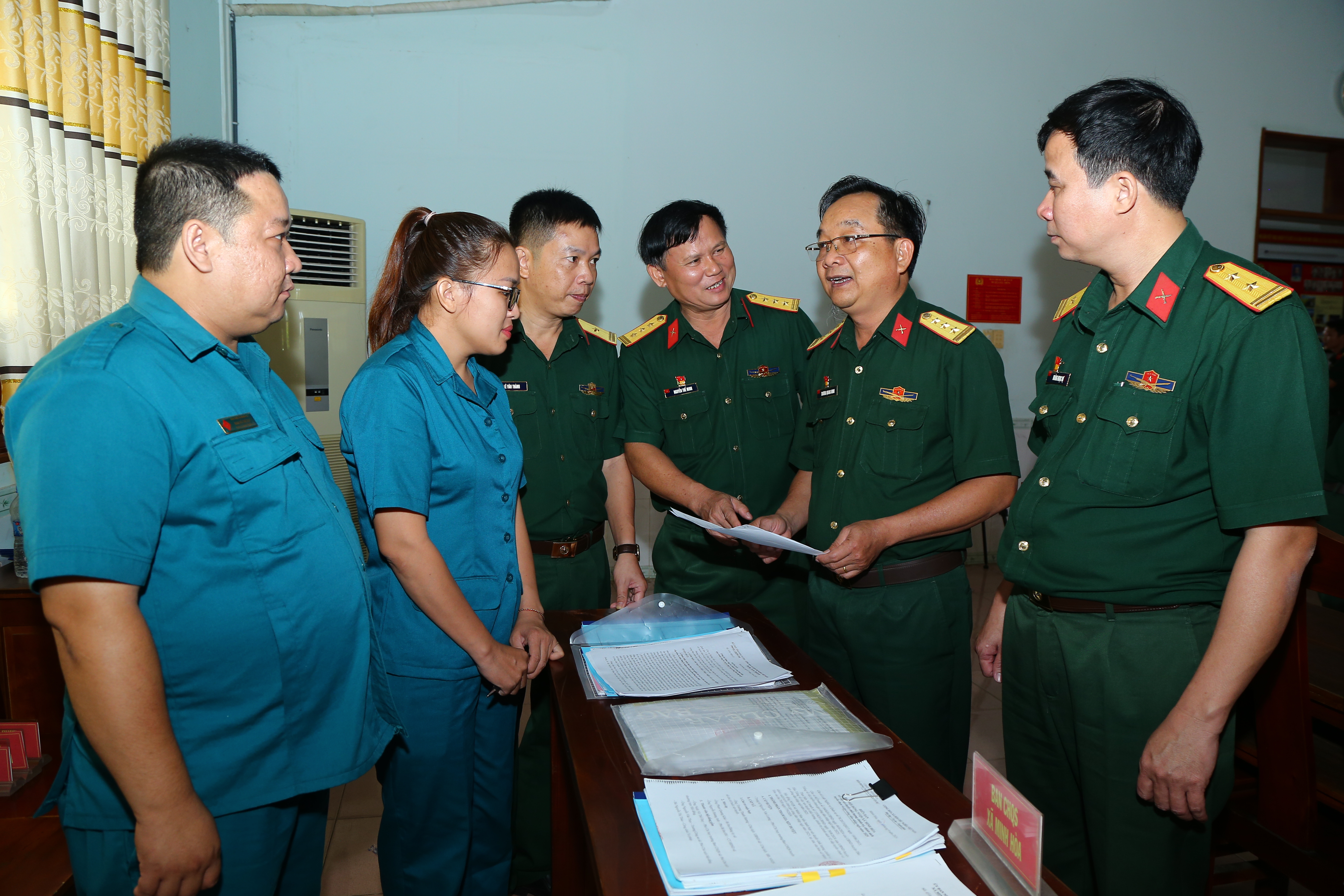 Kiểm tra kết quả khám sức khỏe các công dân đủ độ tuổi nhập ngũ.