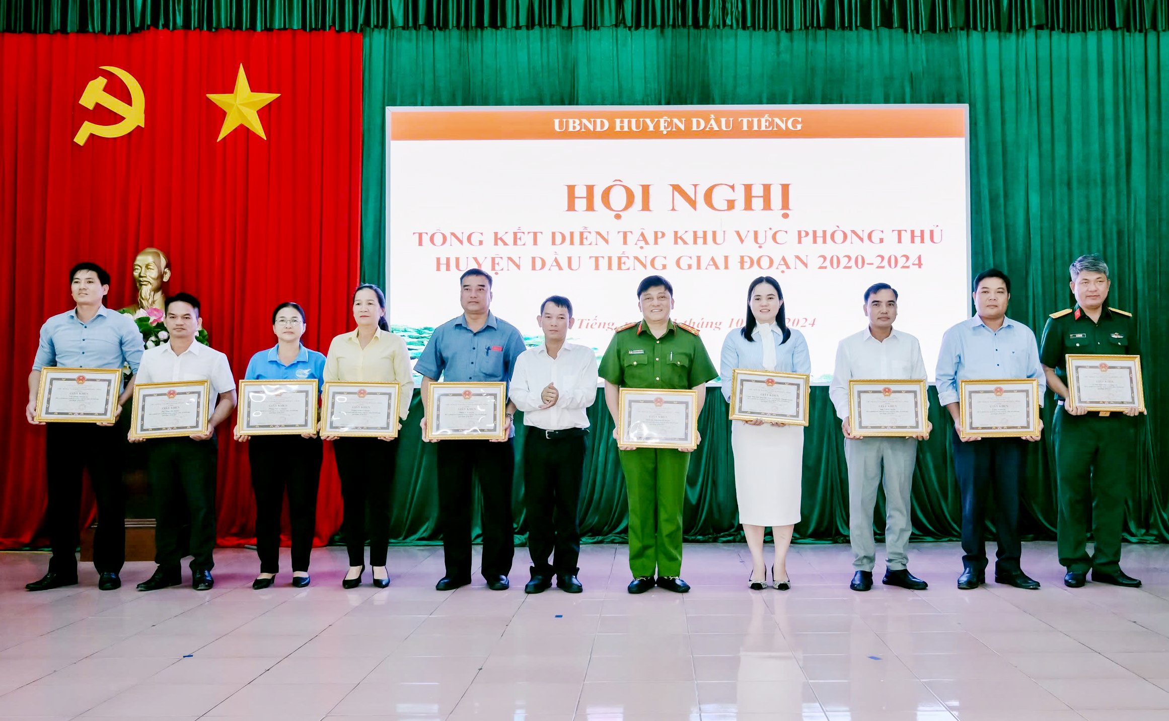 Dịp này, UBND huyện khen thưởng 26 tập thể và 85 cá nhân có thành tích tốt trong công tác diễn tập khu vực phòng thủ huyện giai đoạn 2020-2024.