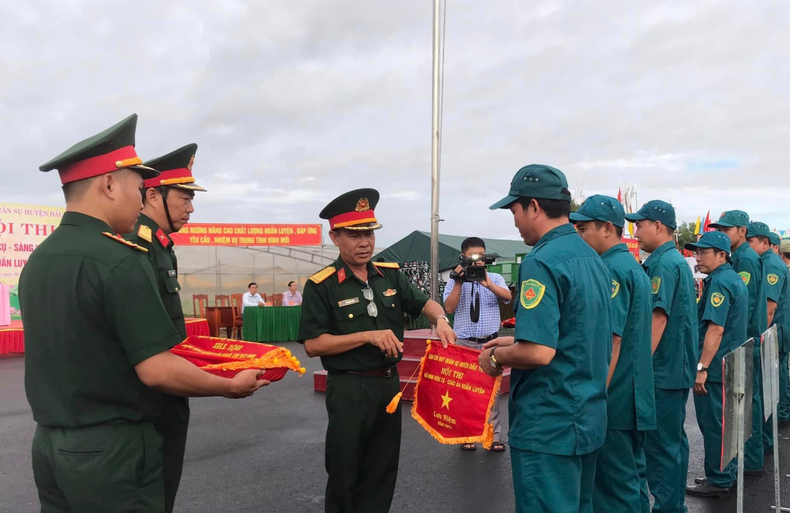 Ban tổ chức trao cờ lưu niệm cho các đội tham gia hội thi.