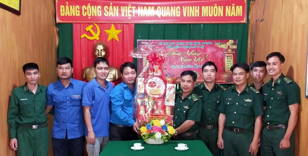 Tại đồn Biên phòng Đắc Nô, anh Vương Ngọc Toại, Bí thư huyện đoàn Đồng Phú thăm hỏi tình hình sức khỏe, đời sống và chúc cán bộ, chiến sĩ đón tết nguyên đán Tân Sửu vui vẻ, đầm ấm.