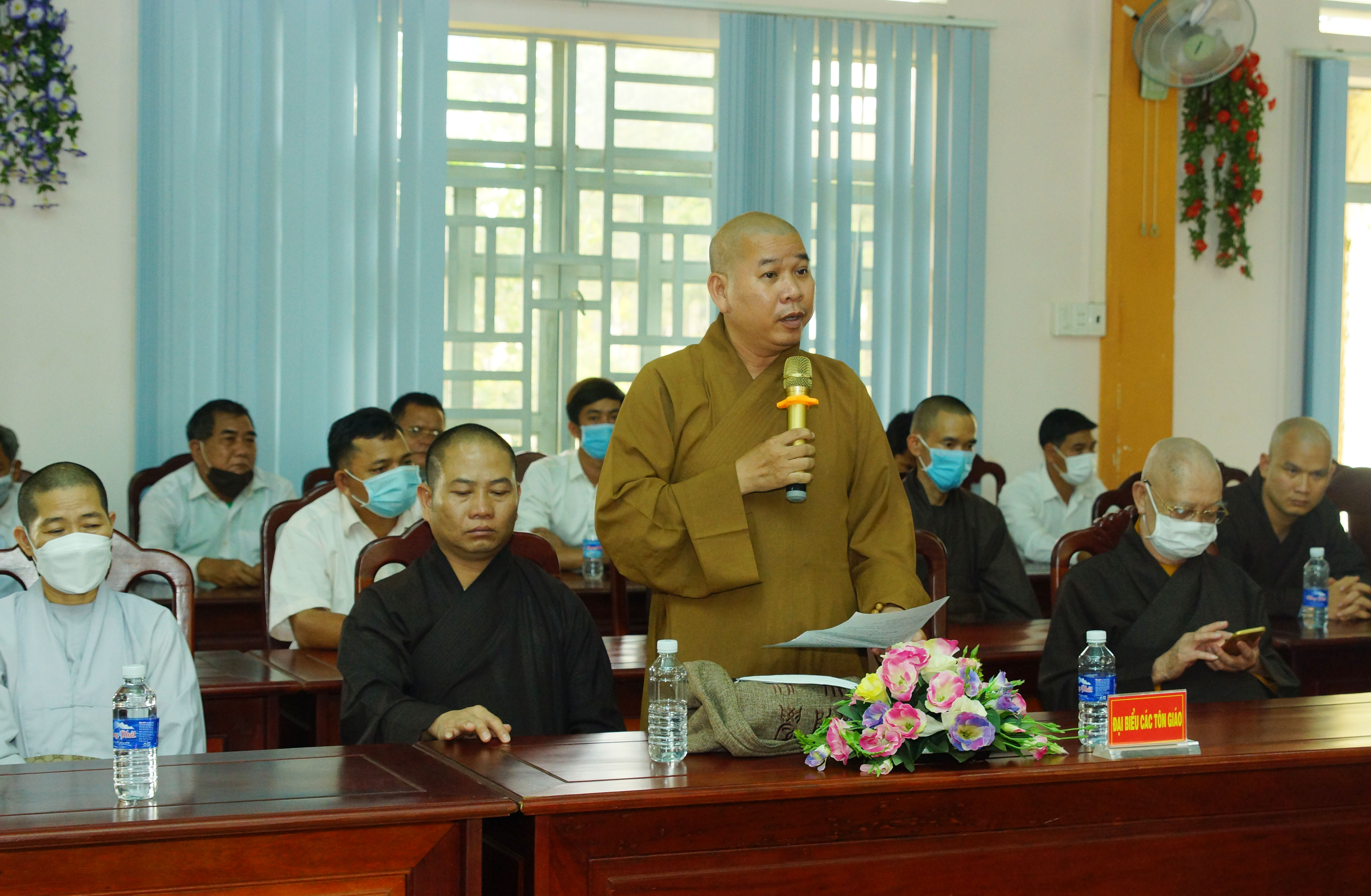 Các chức sắc, chức việc bày tỏ quan điểm đồng tình, thống nhất trong phối hợp hoạt động; vui mừng về những kết quả đạt được của huyện trong năm qua, đồng thời cảm ơn lãnh đạo huyện, Đoàn Kinh tế Quốc phòng 778 luôn quan tâm, tạo điều kiện thuận lợi cho các tôn giáo sinh hoạt đúng phương châm, quy định của pháp luật. Các chức sắc, chức việc cũng nêu lên một số ý kiến liên quan đến việc xin cấp đất xây dựng cơ sở thờ tự để các tín đồ thuận tiện trong việc sinh hoạt tín ngưỡng; hỗ trợ người dân phương pháp, kỹ thuật sản xuất trong phát triển kinh tế; phòng chống, kiểm soát dịch bệnh Covid – 19 hiệu quả, tạo điều kiện thuận lợi để bà con tín đồ các tôn giáo cũng như Nhân dân trên địa bàn huyện an tâm lao động sản xuất.