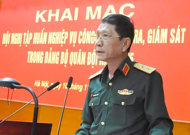 Trung tướng Phạm Ngọc Tuấn, Phó chủ nhiệm Thường trực Ủy ban kiểm tra Quân ủy Trung ương phát biểu khai mạc hội nghị. Ảnh: Báo QĐND