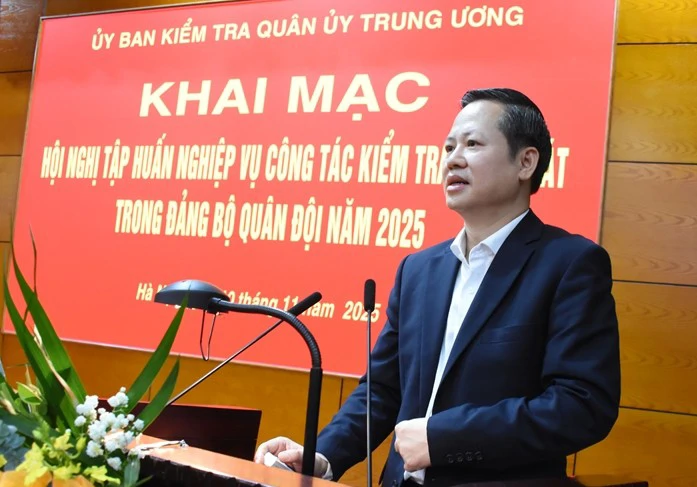 (QK7 Online) - Sáng 10 tháng 11, tại Hội trường Tổng cục Chính trị, Ủy ban Kiểm tra Quân ủy Trung ương khai mạc Hội nghị tập huấn nghiệp vụ công tác kiểm tra, giám sát trong Đảng bộ Quân đội năm 2025 bằng hình thức trực tiếp và trực tuyến trong toàn quân. Đồng chí Đoàn Anh Dũng, Phó chủ nhiệm Ủy ban kiểm tra Trung ương dự, phát biểu chỉ đạo lớp học.Trung tướng Phạm Ngọc Tuấn, Phó chủ nhiệm Thường trực Ủy ban kiểm tra Quân ủy Trung ương dự, khai giảng lớp học.
