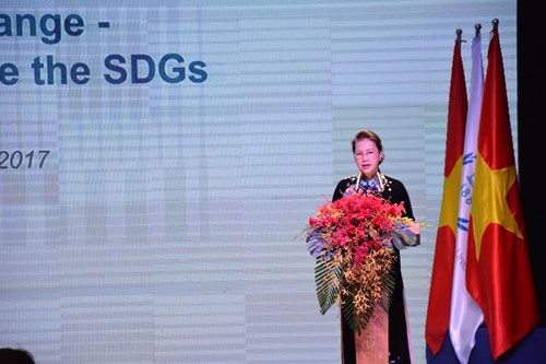 Phát biểu khai mạc hội nghị, Chủ tịch Quốc hội Nguyễn Thị Kim Ngân nhấn mạnh, Việt Nam cũng như hầu hết các quốc gia trong khu vực châu Á -Thái Bình Dương, đặc biệt là những quốc gia ven biển, quốc đảo nhỏ là những nước bị ảnh hưởng nghiêm trọng của biến đổi khí hậu. Theo các kịch bản biến đổi khí hậu của Việt Nam, vào cuối thế kỷ 21, sẽ có khoảng 40% diện tích vùng đồng bằng sông Cửu Long, 11% diện tích vùng đồng bằng sông Hồng và 3% diện tích của các địa phương khác thuộc khu vực ven biển sẽ bị ngập nước, sẽ có khoảng 10-12% dân số Việt Nam bị ảnh hưởng trực tiếp, với tổn thất khoảng 10% GDP. Đặc biệt, Thành phố Hồ Chí Minh là địa phương sẽ bị ngập trên 20% diện tích của thành phố.