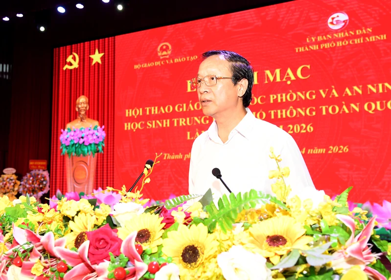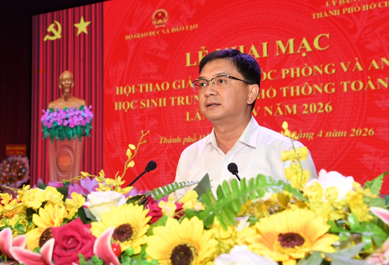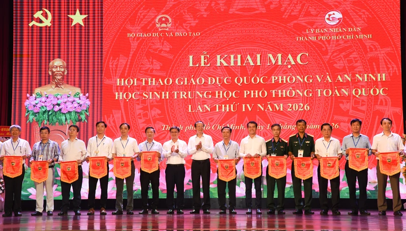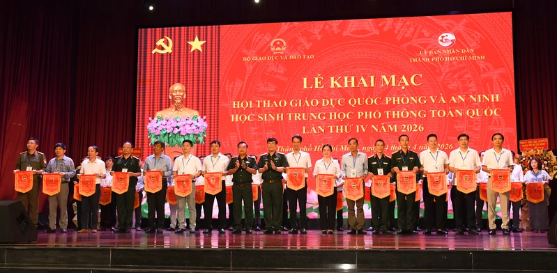 (QK7 Online) - Ngày 14/4, tại Thành phố Hồ Chí Minh, Bộ Giáo dục và Đào tạo tổ chức khai mạc Hội thao Giáo dục quốc phòng và an ninh học sinh trung học phổ thông toàn quốc lần thứ IV năm 2026. Dự lễ khai mạc có các đồng chí: Phạm Ngọc Thưởng, Thứ trưởng Bộ Giáo dục và Đào tạo; Trung tướng Trần Vinh Ngọc, Bí thư Đảng ủy, Chính ủy Quân khu 7; Nguyễn Mạnh Cường, Phó Chủ tịch UBND Thành phố Hồ Chí Minh; Thiếu tướng Trần Ngọc Thanh, Vụ trưởng Vụ Giáo dục quốc phòng và an ninh, Bộ Giáo dục và Đào tạo; lãnh đạo các cơ quan Bộ Tổng Tham mưu; Lãnh đạo sở, ngành Thành phố Hồ Chí Minh.