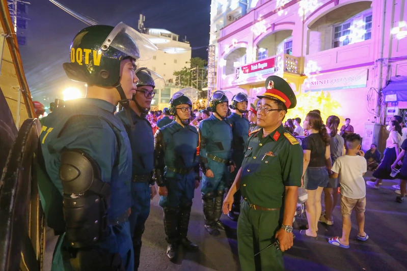 Ban CHQS phường Phú Định (Bộ Tư lệnh TP. Hồ Chí Minh) triển khai lực lượng bảo đảm an ninh cho sự kiện.