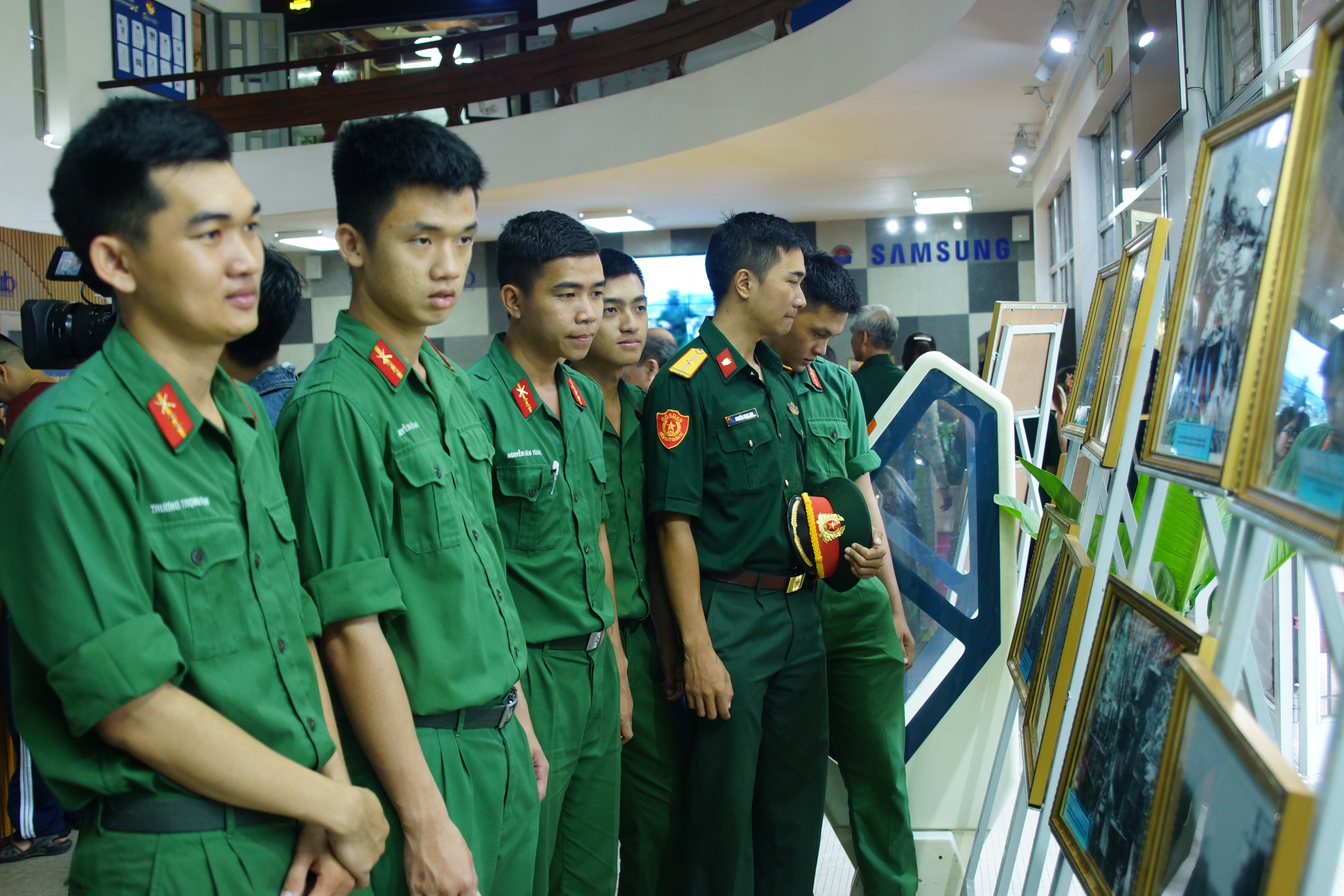 Cán bộ, chiến sĩ Tiểu đoàn 31 Kiểm soát quân sự Bộ Tư lệnh Thành phố Hồ Chí Minh tham quan khu trưng bày hình ảnh
