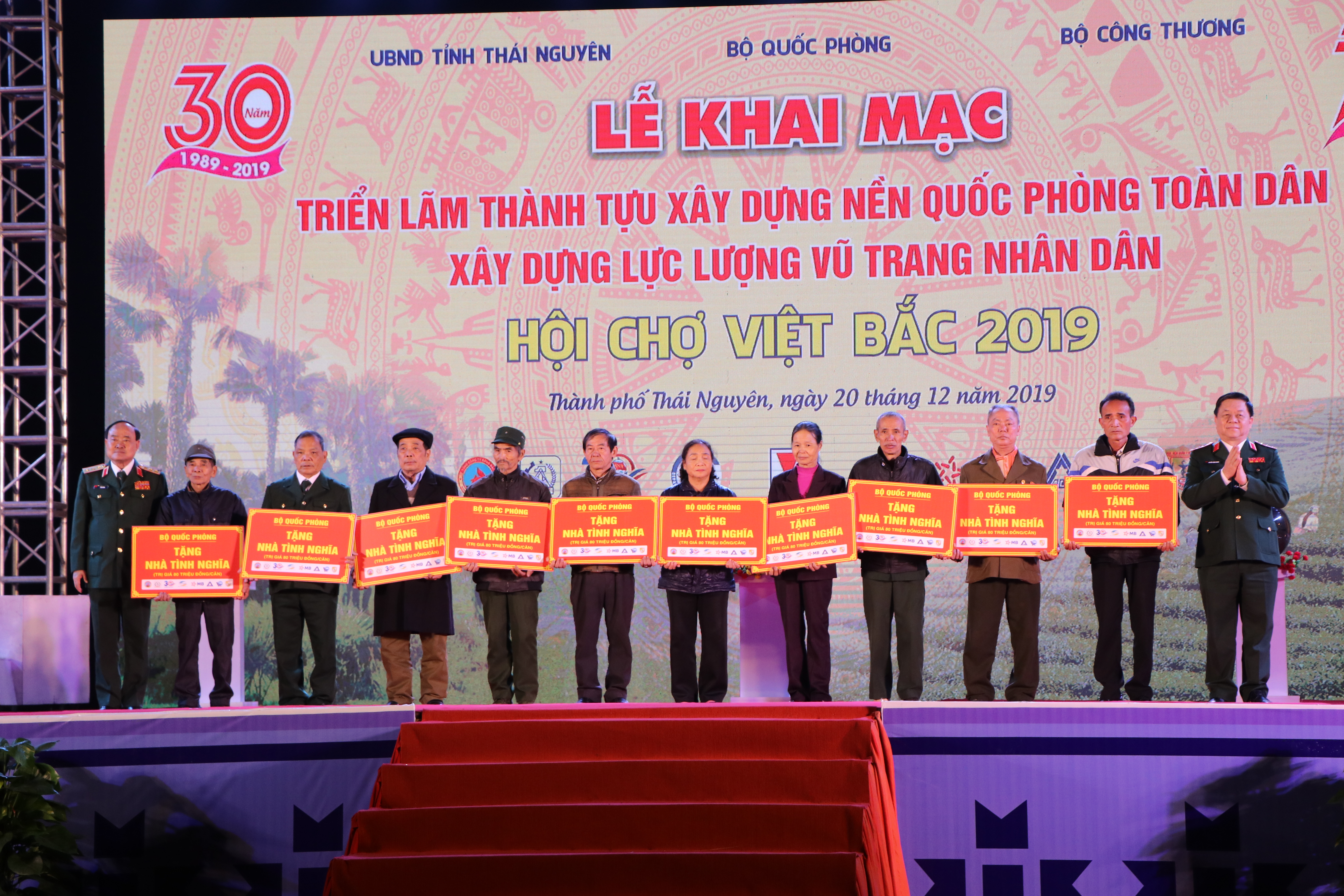 Nhân dịp này, Bộ Quốc phòng trao tặng 800 triệu đồng xây dựng 10 căn nhà tình nghĩa cho 10 gia đình chính sách đặc biệt khó khăn trên địa bàn tỉnh Thái Nguyên (trị giá 80 triệu đồng/căn).