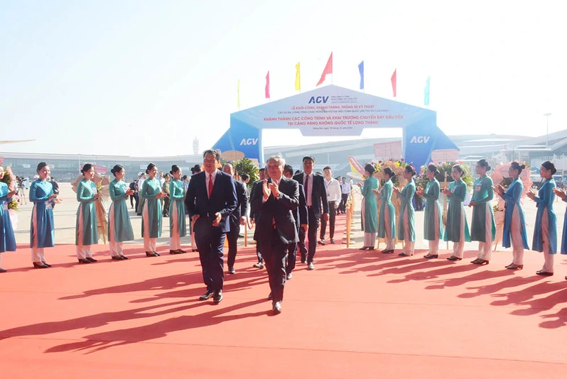 Tại buổi lễ, Phó thủ tướng Thường trực Nguyễn Hòa Bình và các đại biểu đã cắt băng khánh thành các công trình và khai trương chuyến bay đầu tiên tại cảng hàng không quốc tế Long Thành.
