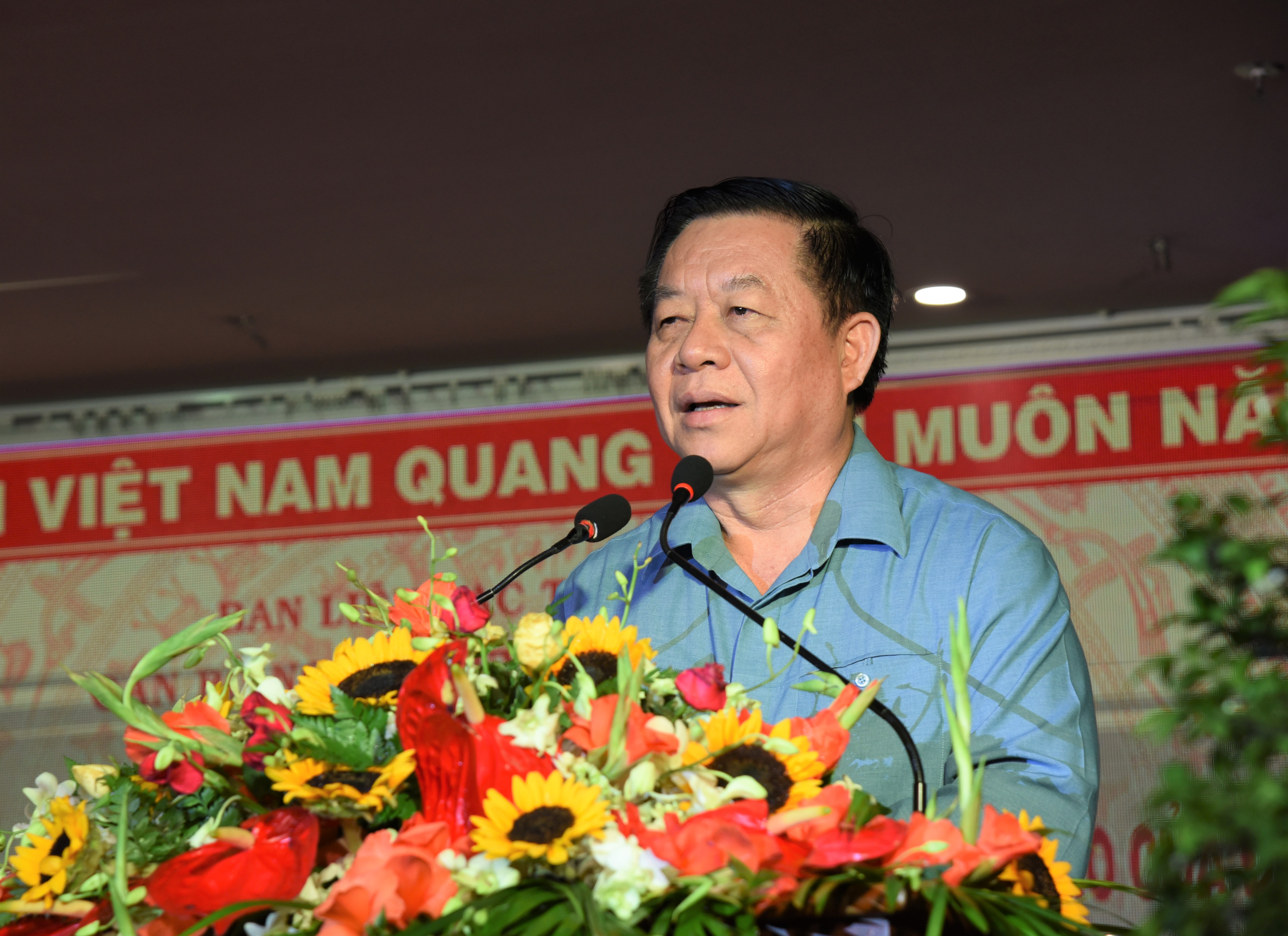 Thượng tướng Nguyễn Trọng Nghĩa, Bí thư Trung ương Đảng, Trưởng Ban Tuyên giáo Trung ương phát biểu tại buổi họp mặt.