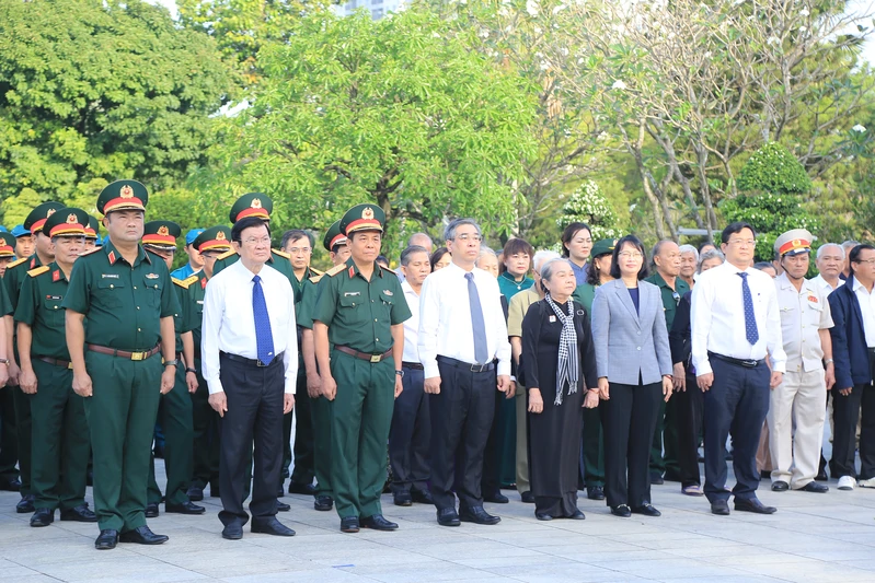 Đoàn đại biểu Đảng ủy, Bộ Tư lệnh Quân khu 7 dành phút mặc niệm tri ân các anh hùng liệt sĩ.