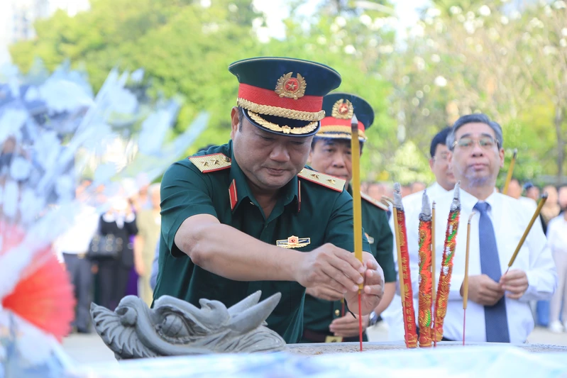 Các đại biểu tiến hành dâng hương tri ân các anh hùng liệt sĩ tại Nghĩa trang Liệt sĩ Thành phố Hồ Chí Minh.