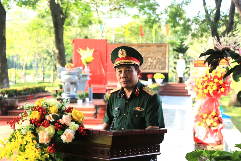 Trung tướng Lê Xuân Thế, Tư lệnh Quân khu 7 dâng hương viếng các anh hùng liệt sĩ.