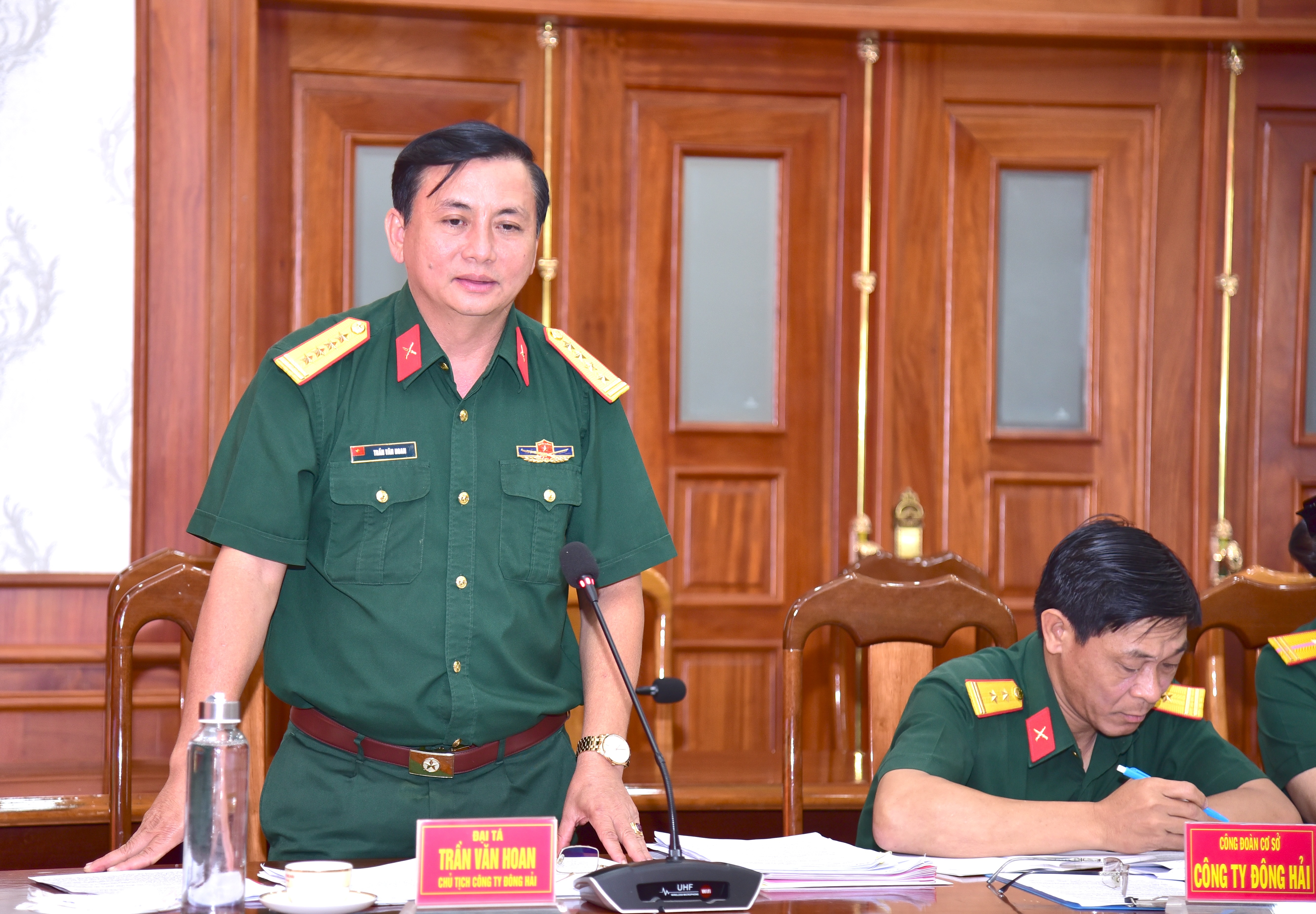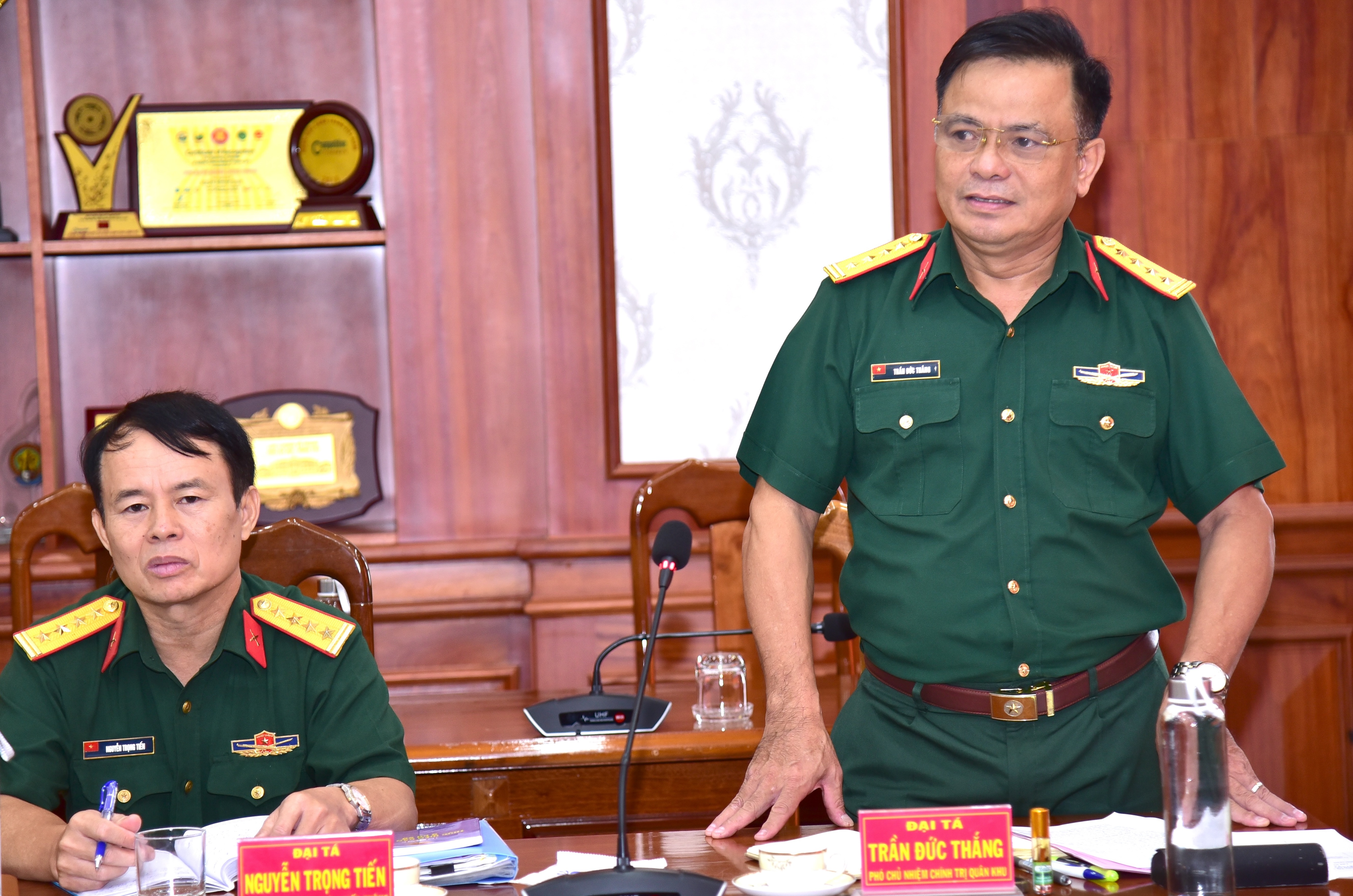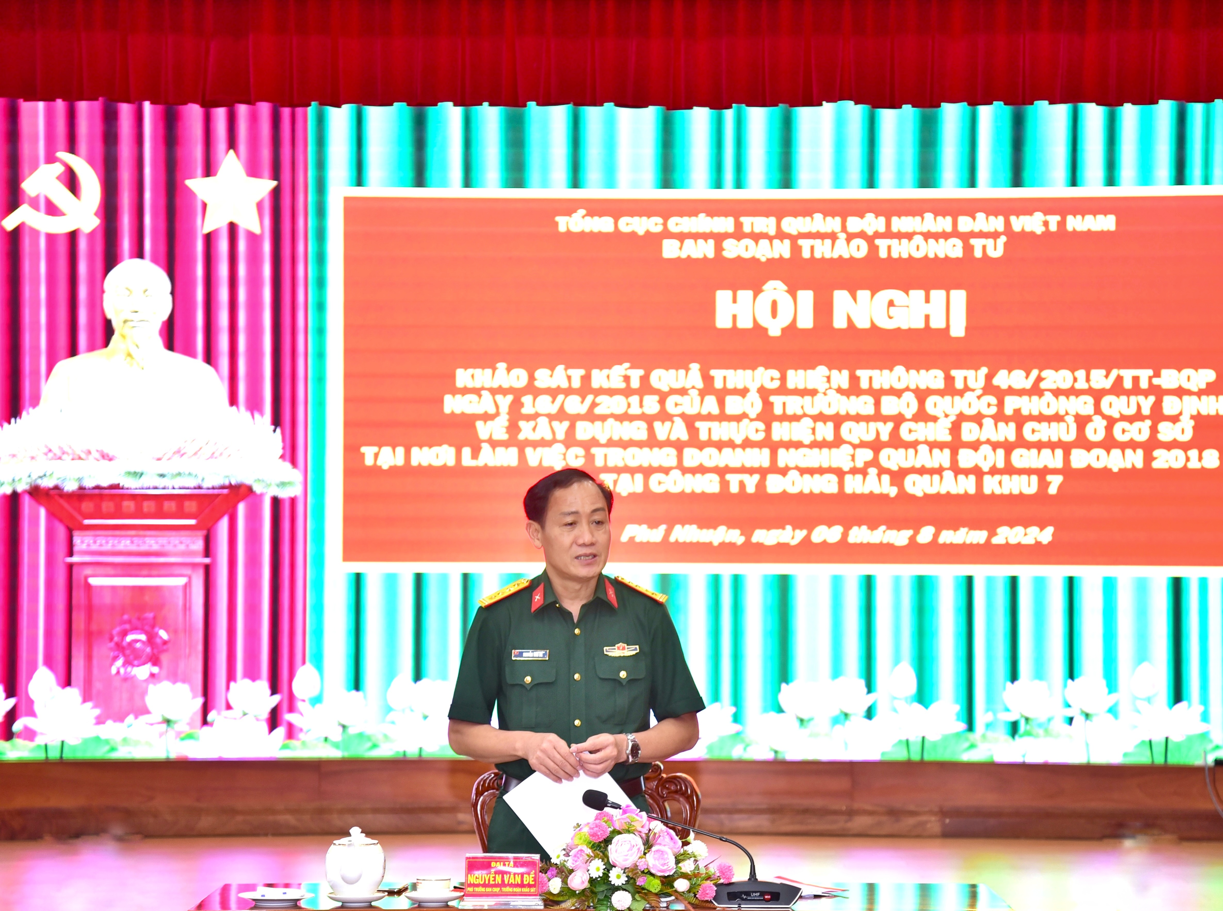 Đại tá Nguyễn Văn Đề, Phó trưởng Ban Công đoàn Quốc phòng, Trưởng đoàn khảo sát. Dự hội nghị có Đại tá Trần Đức Thắng, Phó Chủ nhiệm Chính trị Quân khu 7.