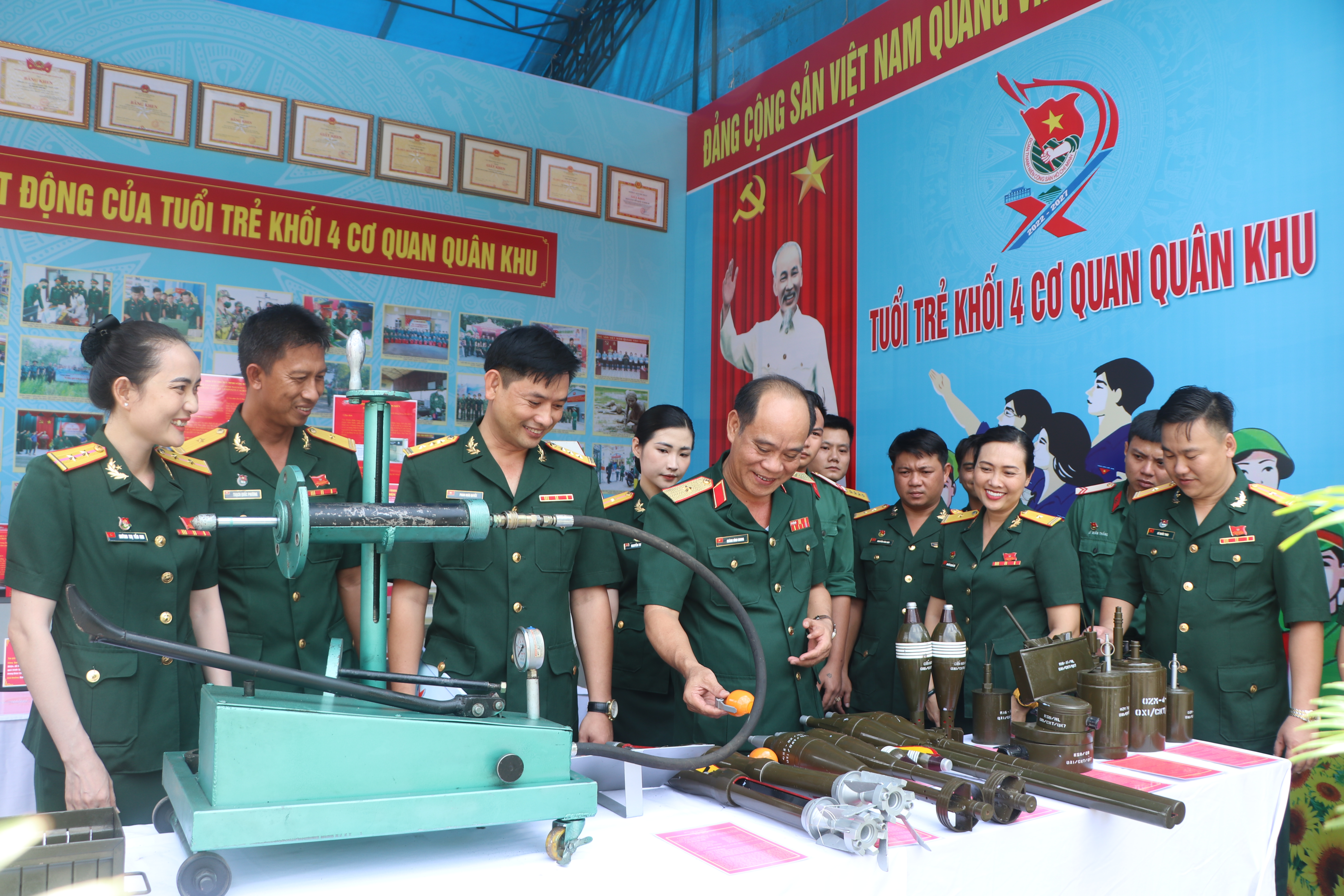 Thiếu tướng Hoàng Đình Chung, Chủ nhiệm Chính trị Quân khu và các đại biểu tham quan triển lãm tại Đại hội Đại biểu Đoàn TNCS Hồ Chí Minh Quân khu lần thứ X (nhiệm kỳ 2022-2027).