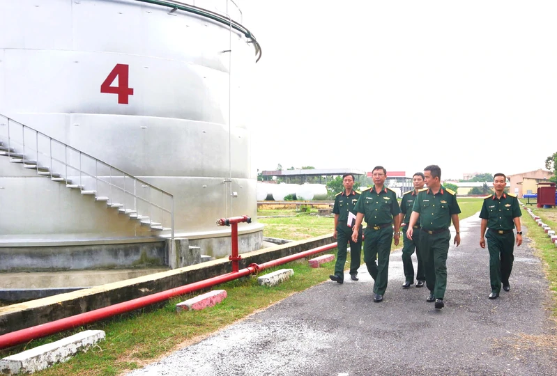 Đoàn công tác Cục Hậu cần - Kỹ thuật Quân khu kiểm tra công tác bảo đảm an toàn bồn chứa xăng dầu của Kho VK102.