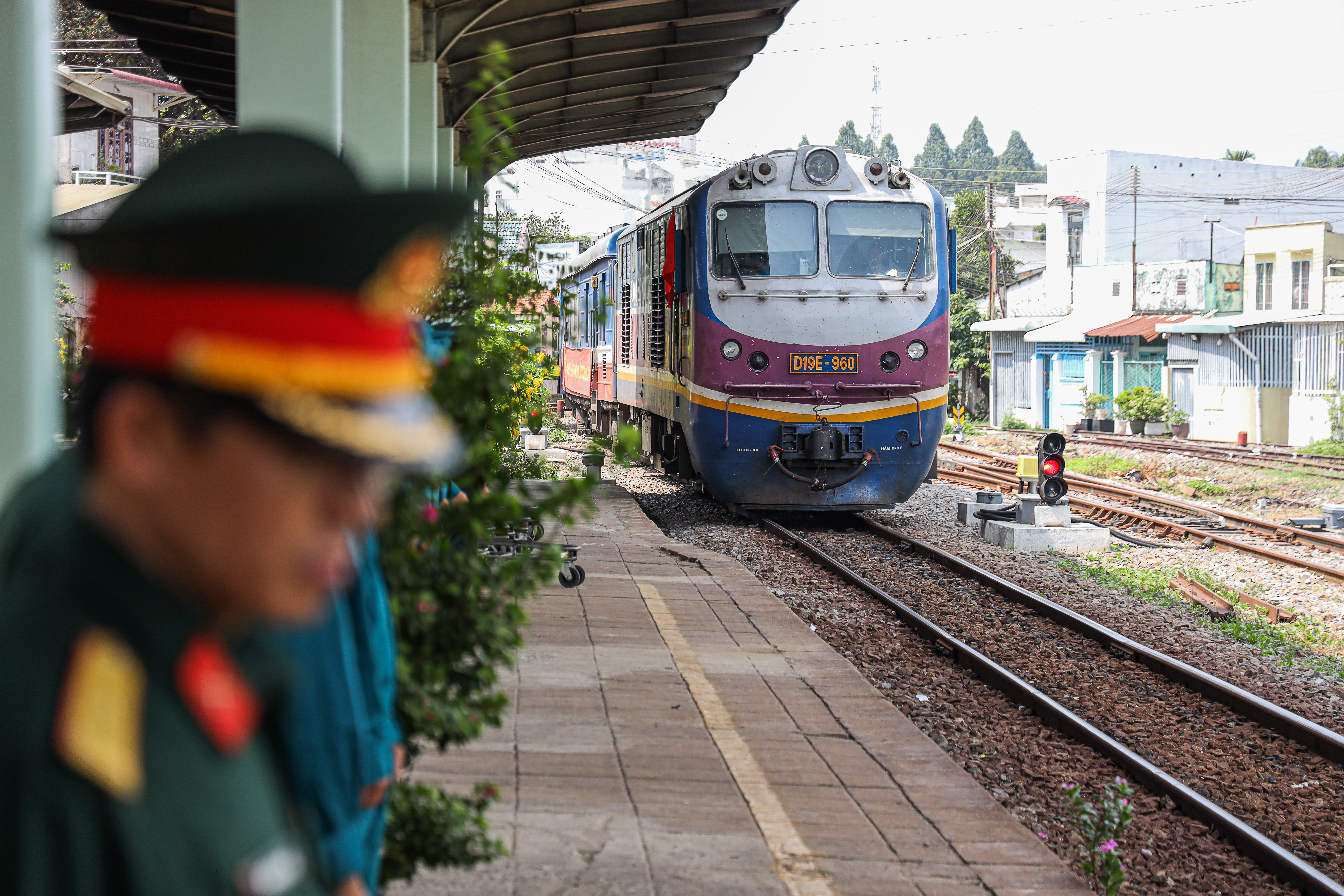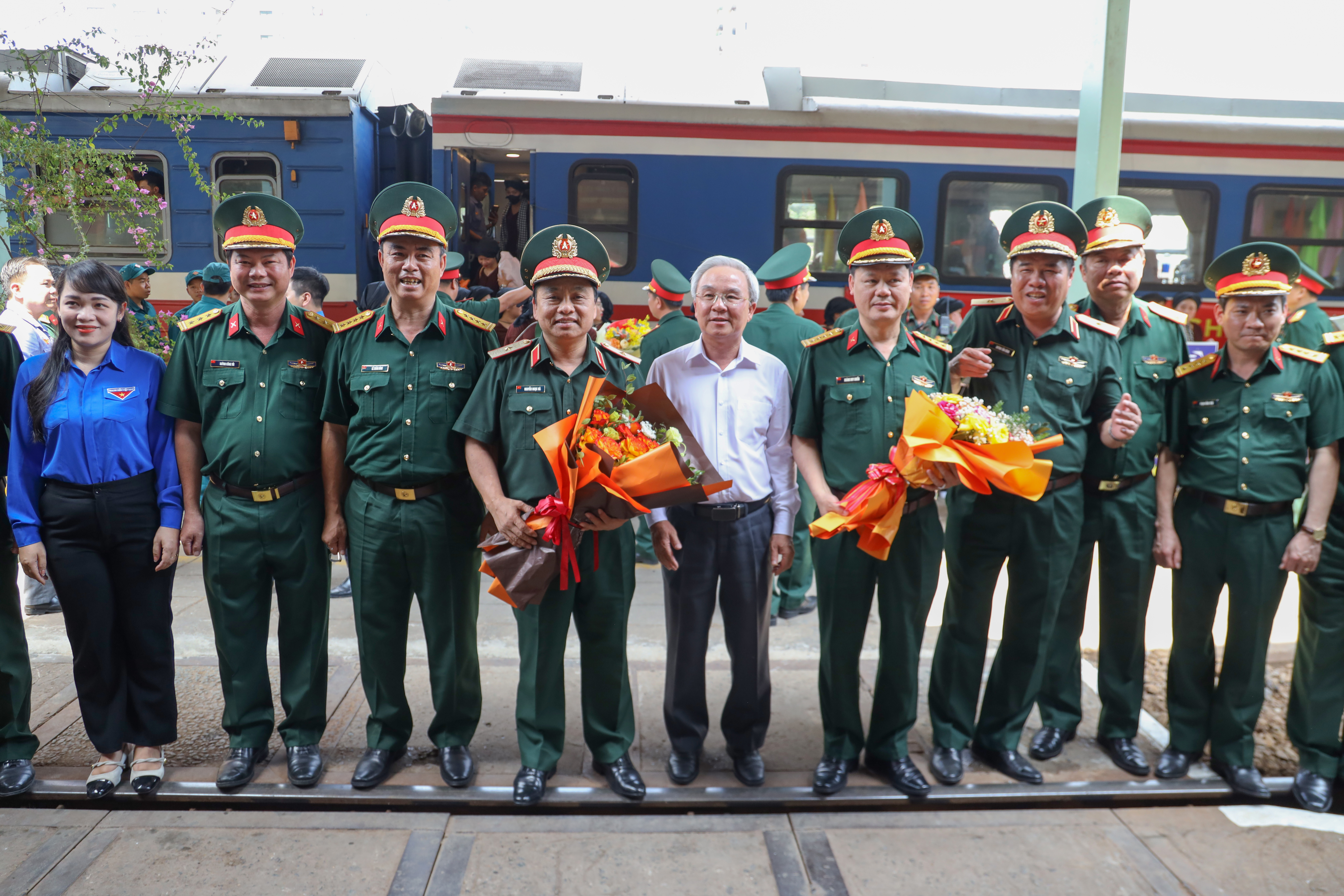 Chuyến tàu đưa lực lượng tham gia diễu binh diễu hành đến ga Biên Hòa, Đồng Nai.