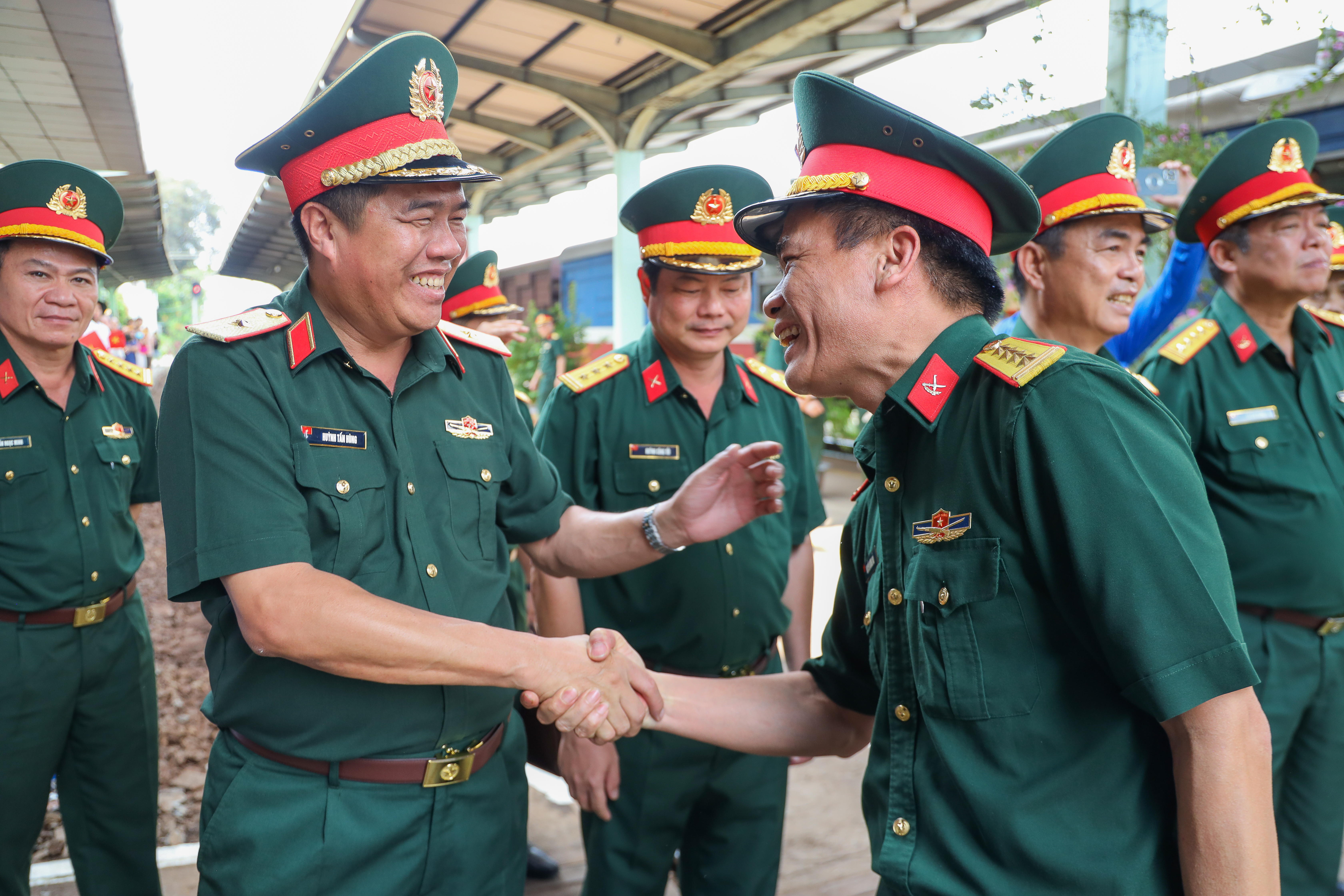 Thủ trưởng Tổng cục Hậu cần - Kỹ thuật chào đón cán bộ, chiến sĩ.
