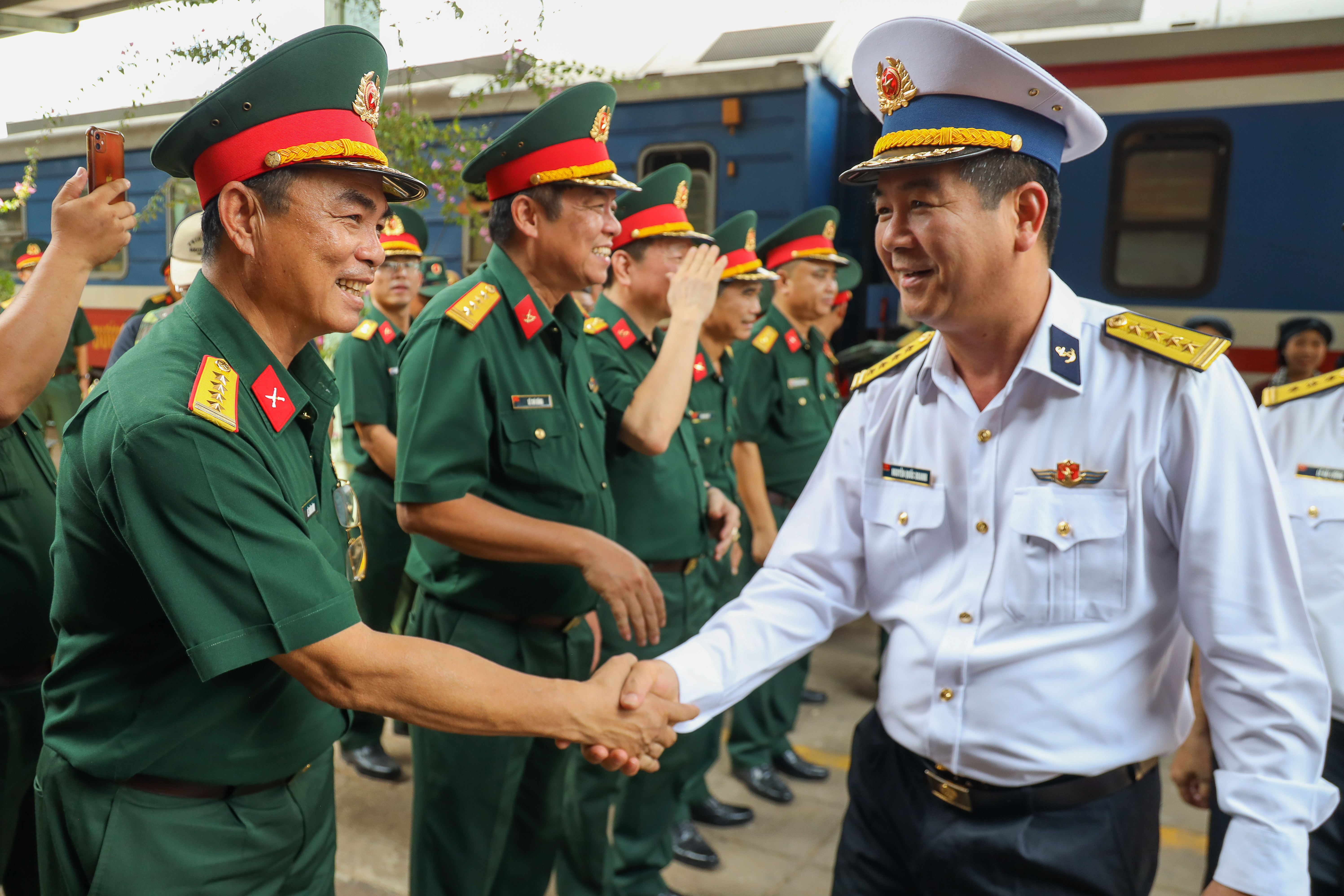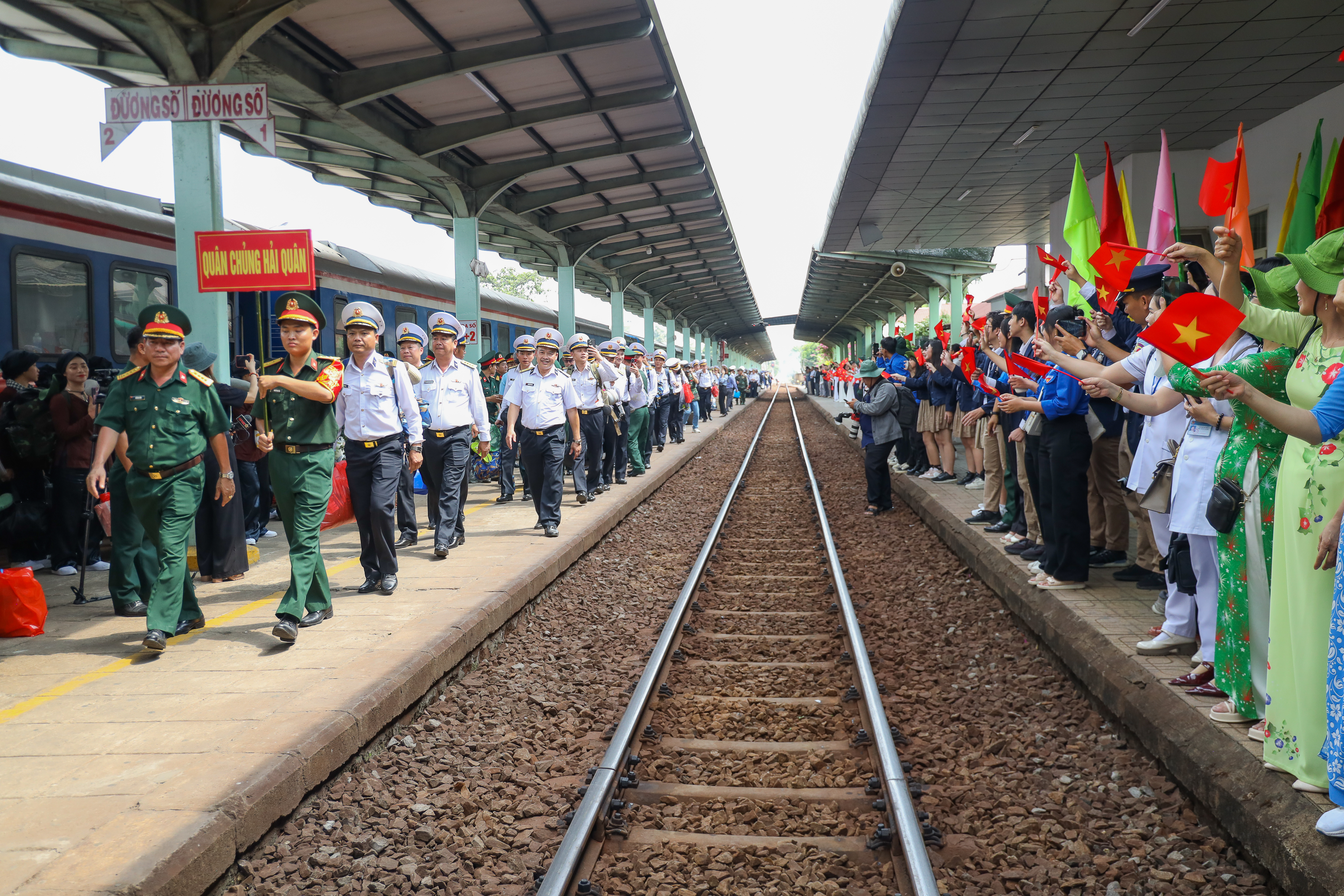 Các cán bộ, chiến sĩ Quân chủng Hải quân đến ga Biên Hòa.