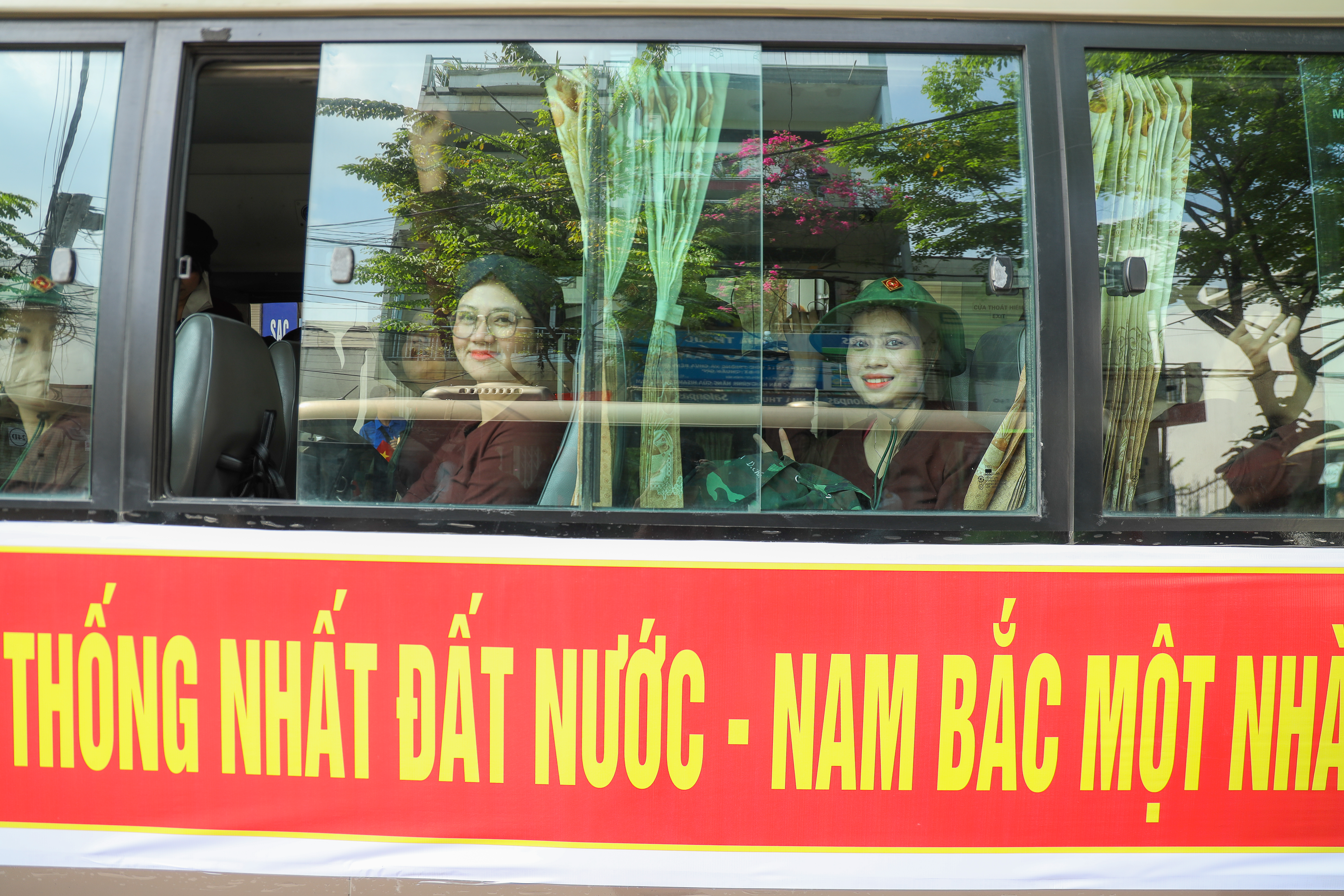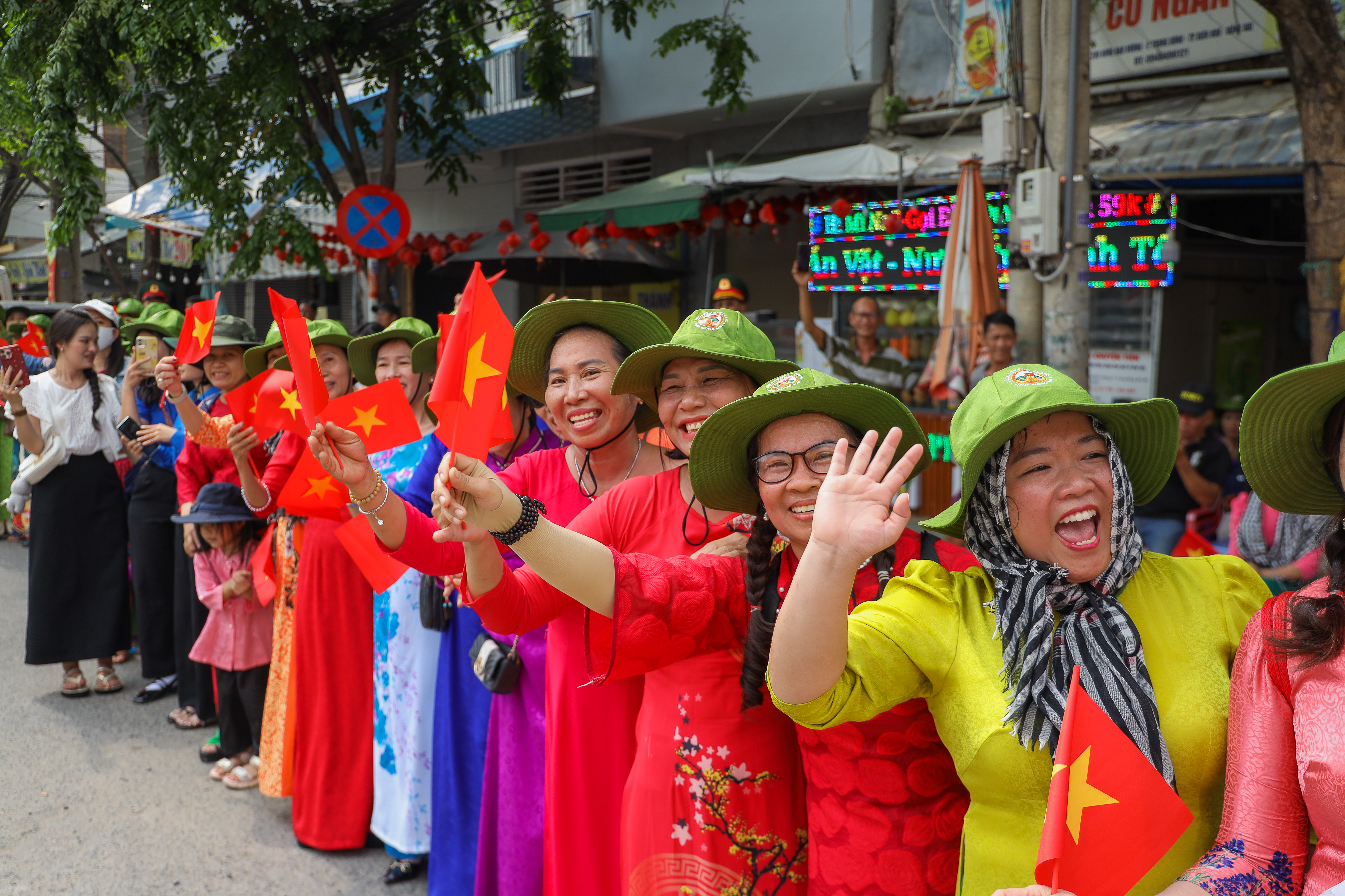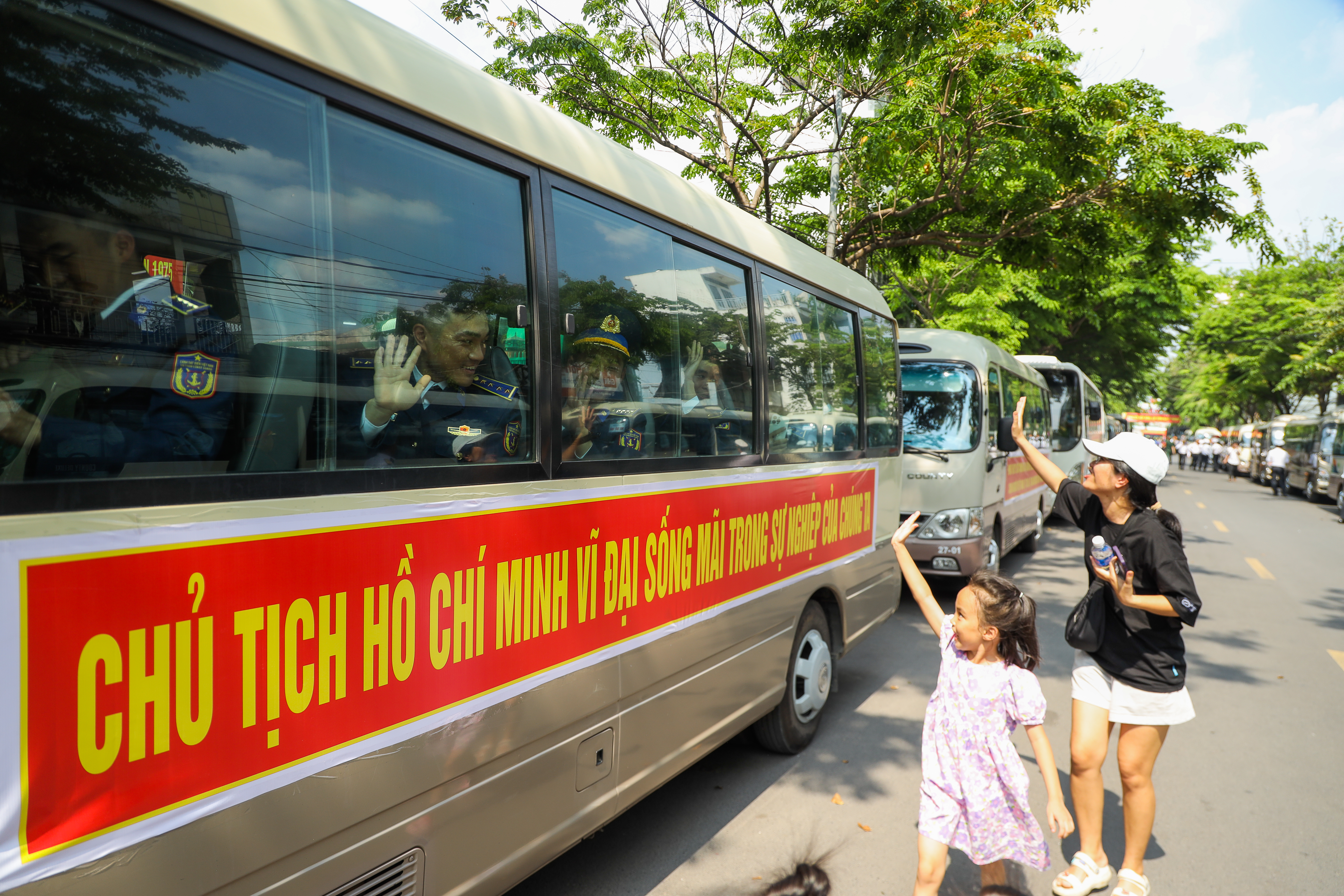 Các em m nhỏ háo hức ra đường vẫy cờ, chào đón các bộ đội.