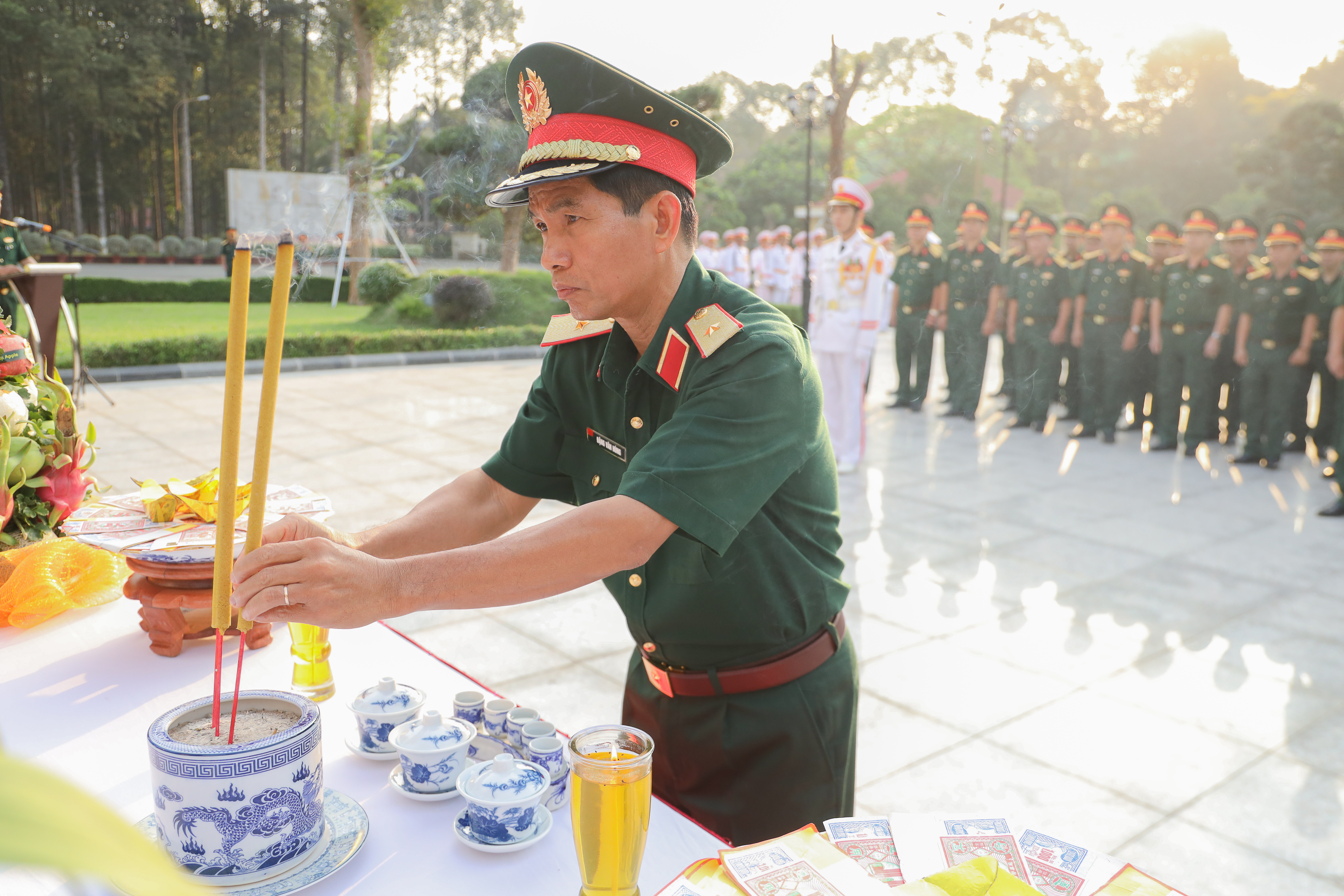 Thiếu tướng Trần Chí Tâm, Phó Chủ nhiệm Chính trị Quân khu dâng hương Bác Hồ.