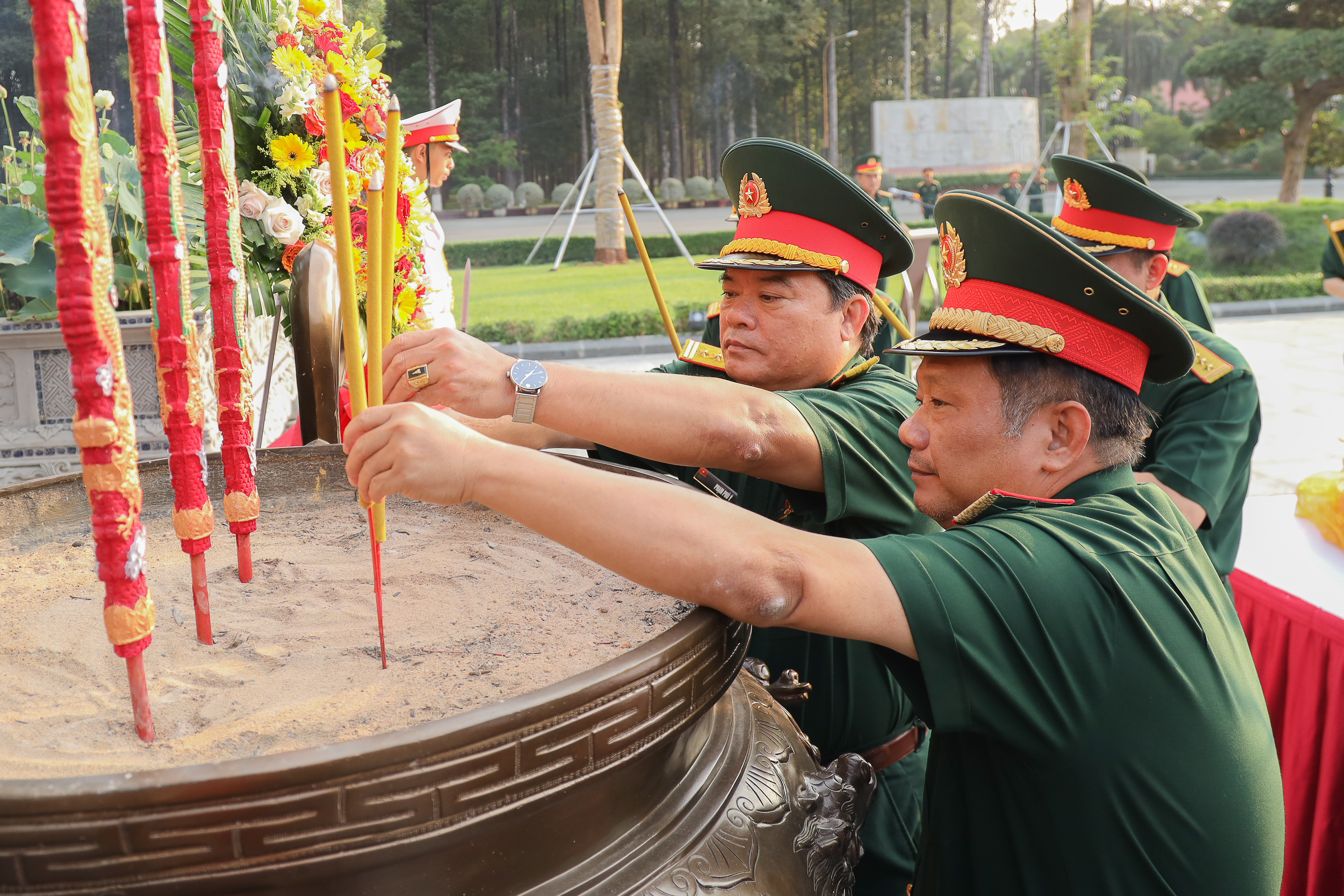 Trước buổi lễ, thủ trưởng Bộ Tư lệnh, các cơ quan Quân khu và cán bộ, chiến sĩ dâng hương tưởng niệm Chủ tịch Hồ Chí Minh tại Đài tưởng niệm Chủ tịch Hồ Chí Minh trước Sở chỉ huy Quân khu.