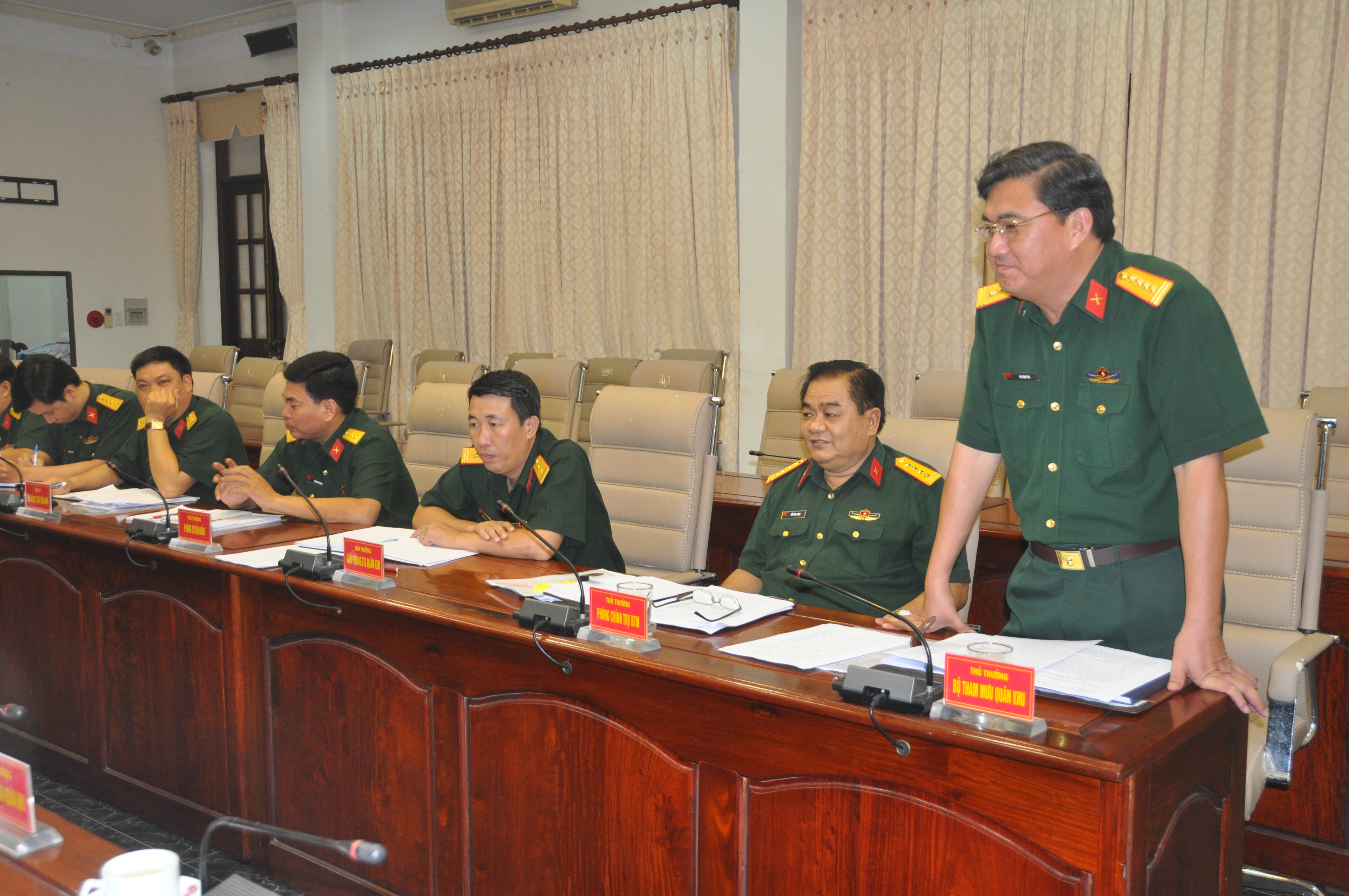 Đại tá Võ Văn Thi, Phó tham mưu trưởng Quân khu phát biểu tại hội nghị