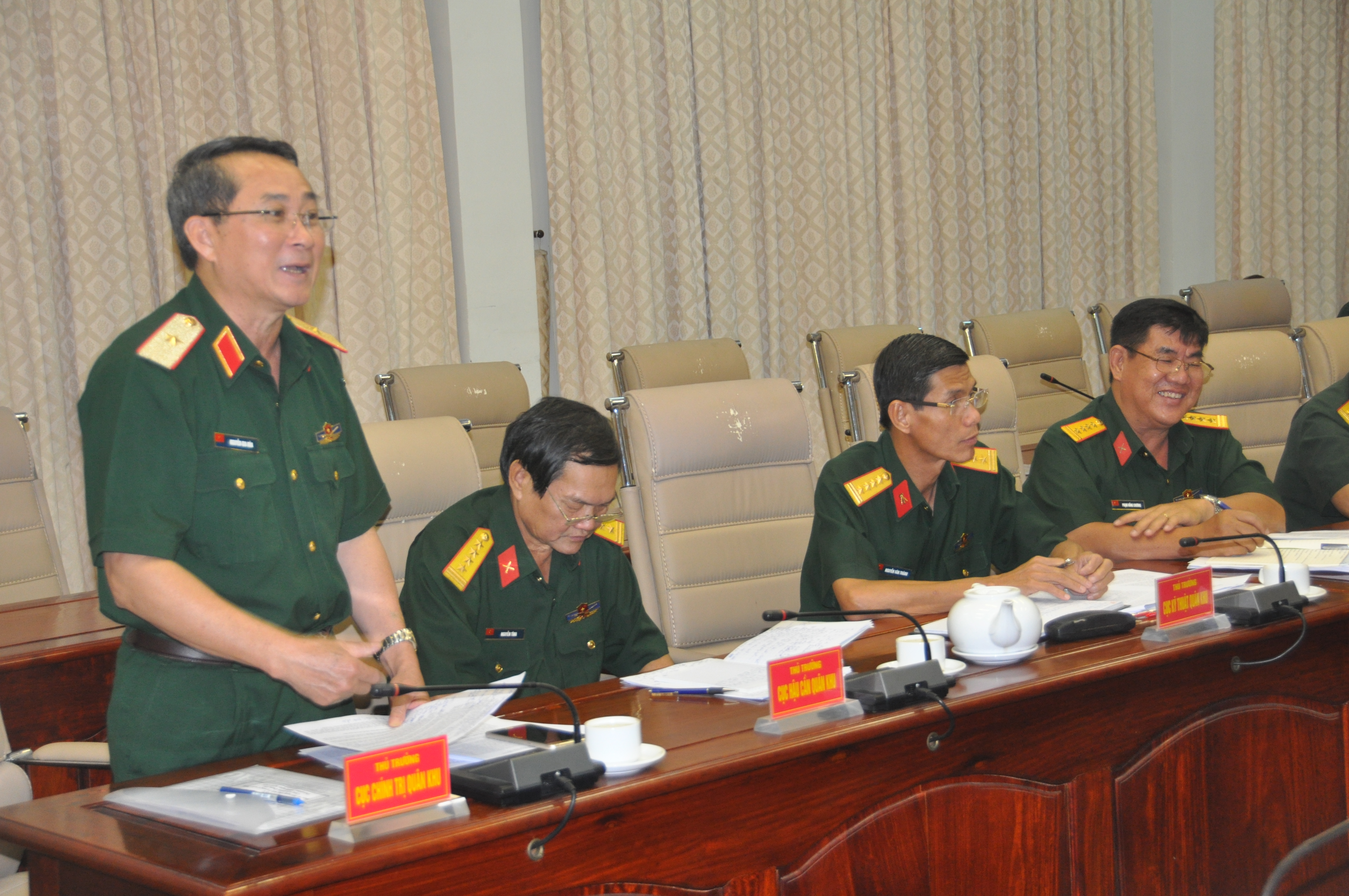 Thiếu tướng Nguyễn Gia Hòa, Chủ nhiệm Chính trị Quân khu phát biểu tại hội nghị