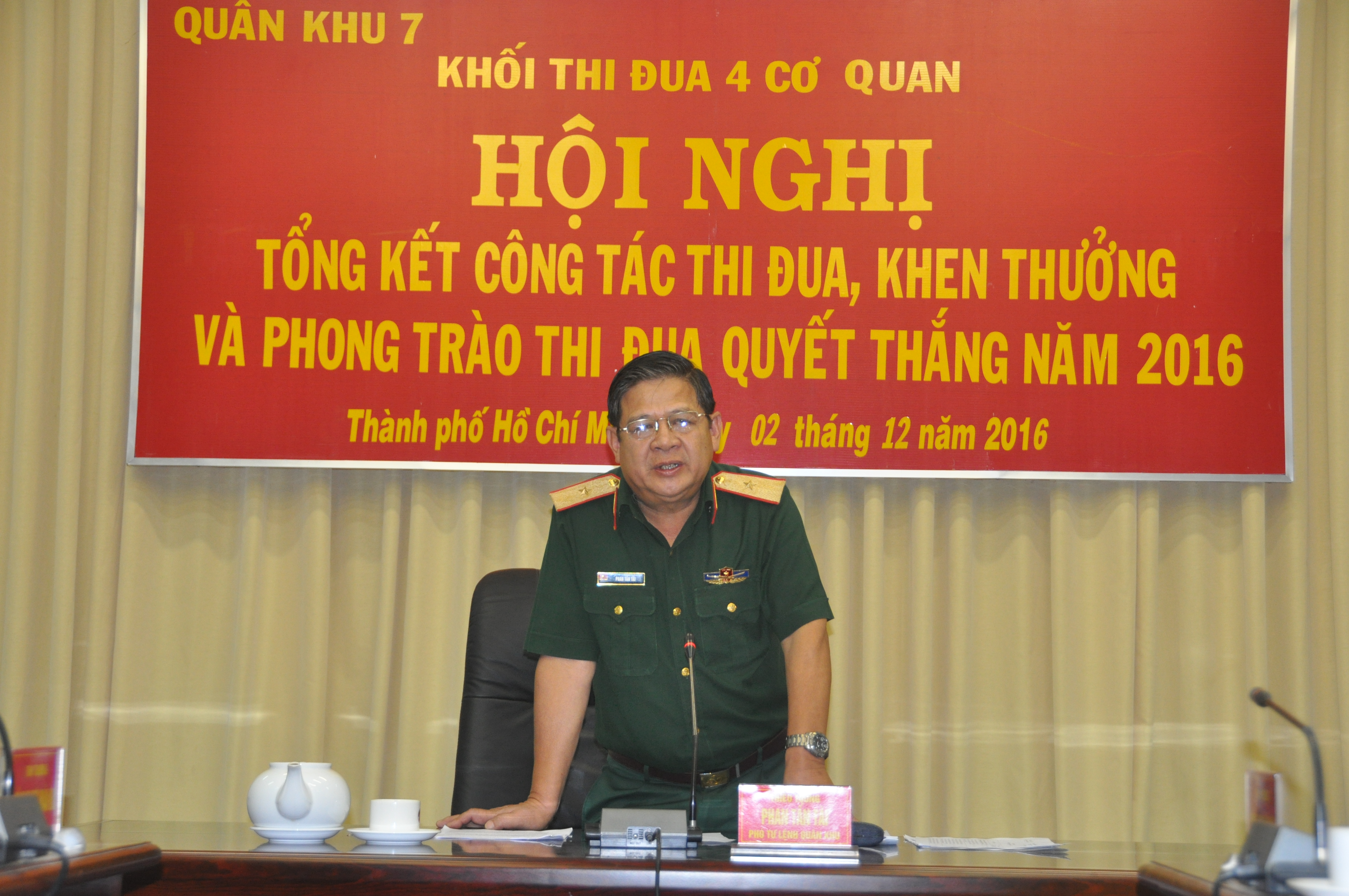 Ngày 2/12, khối thi đua 4 cơ quan: Bộ Tham mưu, Cục Chính trị, Cục Hậu cần và Cục Kỹ thuật Quân khu 7 tổ chức tổng kết phong trào thi đua quyết thắng năm 2016. Thiếu tướng Phan Tấn Tài, Phó Tư lệnh Quân khu 7 dự và phát biểu chỉ đạo.