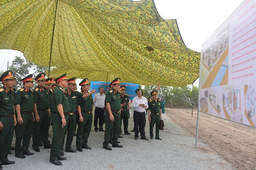 Đại tá Nguyễn Văn Trứ, Chỉ huy trưởng Bộ CHQS tỉnh Tây Ninh báo cáo quá trình chuẩn bị thi công công trình.