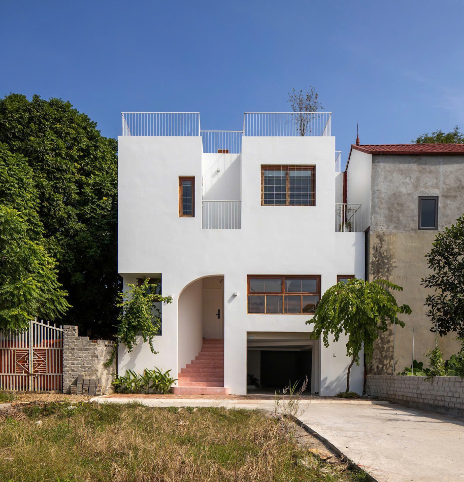 Nằm bên bờ sông yên bình của một đô thị đang chuyển mình mạnh mẽ, ngôi nhà hiện lên như một khối hộp trắng cong và kín đáo. Thế nhưng, ẩn sau lớp vỏ ấy là một "cuộc nổi loạn của những đường cong uốn lượn, nơi ánh sáng và gió trời được nhào nặn để tạo nên một không gian hướng nội tuyệt đối, tách biệt khỏi sự xô bồ của phố thị để vỗ về tâm hồn nữ thiết kế thời trang.