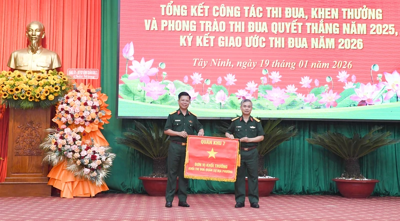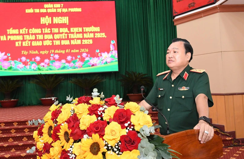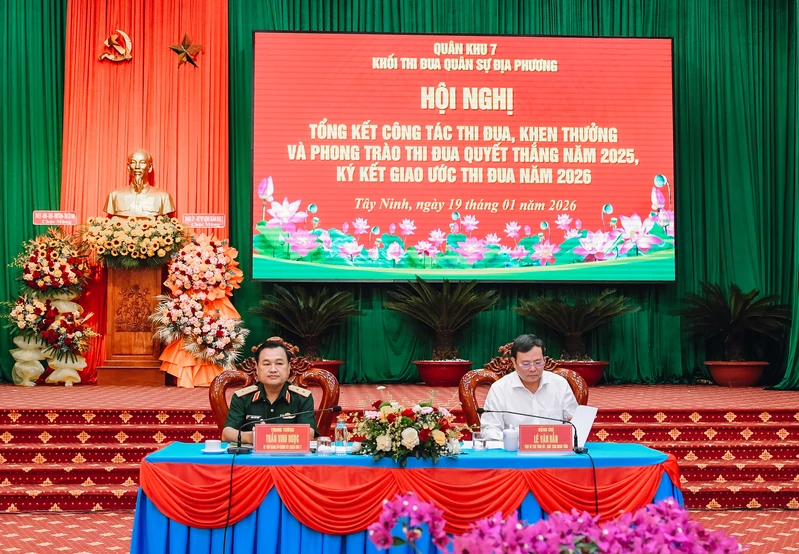 (QK7 Online) - Ngày 19/1, tại tỉnh Tây Ninh, Khối Quân sự địa phương Quân khu 7 (Khối thi đua số 2) tổ chức tổng kết phong trào thi đua quyết thắng (TĐQT) năm 2025. Trung tướng Trần Vinh Ngọc, Bí thư Đảng ủy, Chính ủy Quân khu 7; Đồng chí Lê Văn Hẳn, Phó Bí thư Tỉnh ủy, Chủ tịch UBND tỉnh đồng chỉ trì hội nghị.